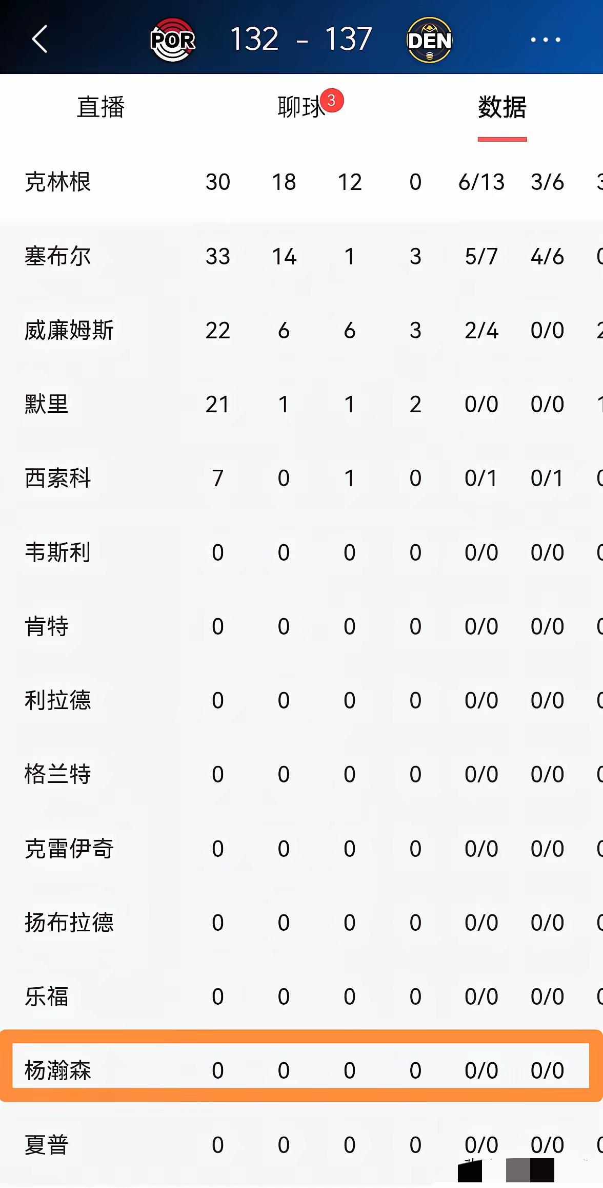 开拓者主帅斯普利特真是欺人太甚!在今天开拓者客场以132:137输给掘金的比赛中,斯普利特教练再次让杨瀚森枯坐了一整场的冷板凳,不仅让杨瀚森失去了和强队交手的机会,而且让杨瀚森错过了和偶像约基奇同场竞技的机会,斯普利特教练这属于典型的欺人太甚。