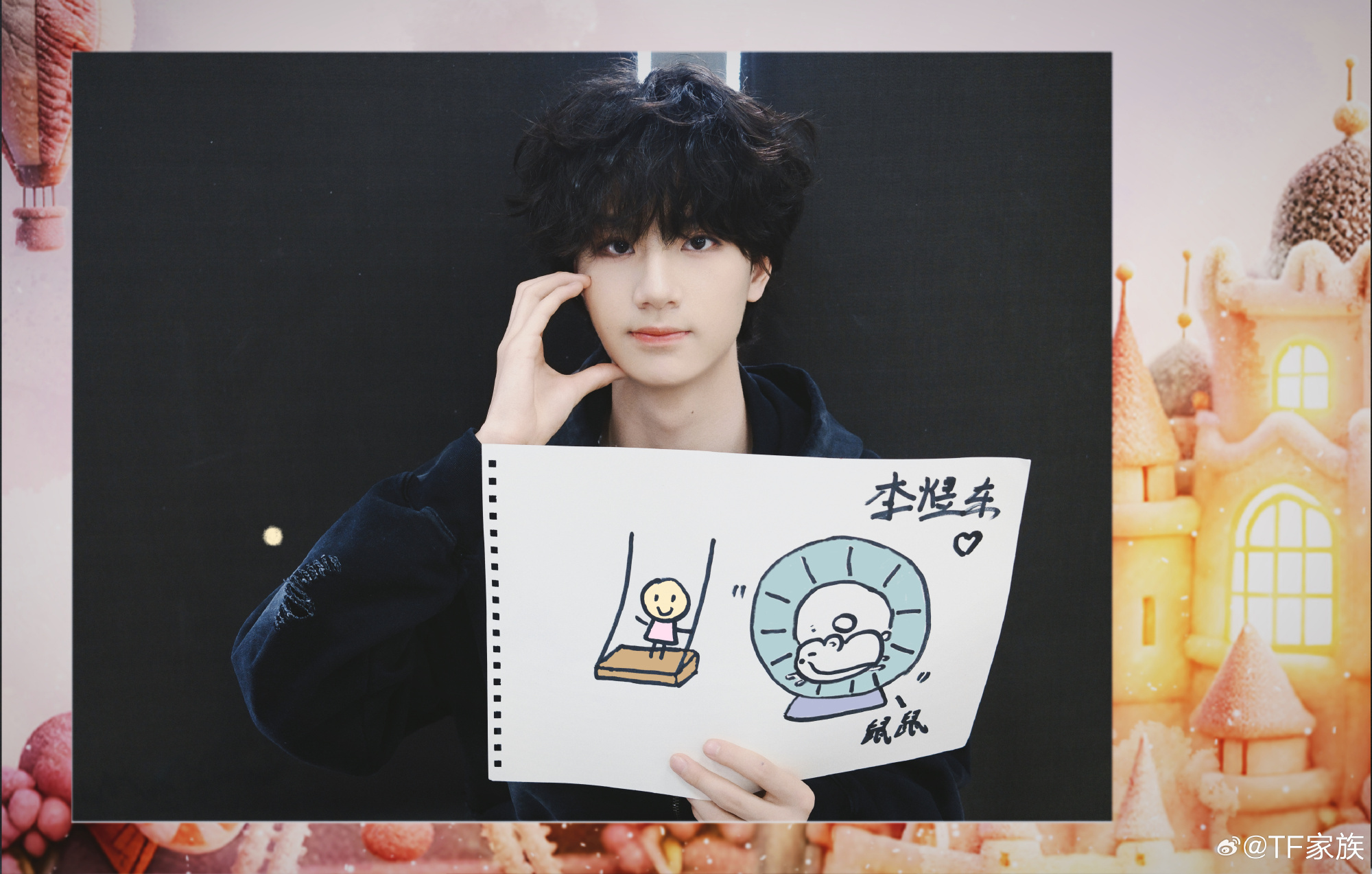 我感觉这个照片应该不是solo曲预告,看同事的画也是一个跟自己的名字相关的简笔画,另一个是可以根据这个简笔画联想到的跟乐园跟自己有关的东西,都是两部分远看像10。不过东东的这个,荡秋千的小人和鼠鼠都可以指自己,还蛮有意思的