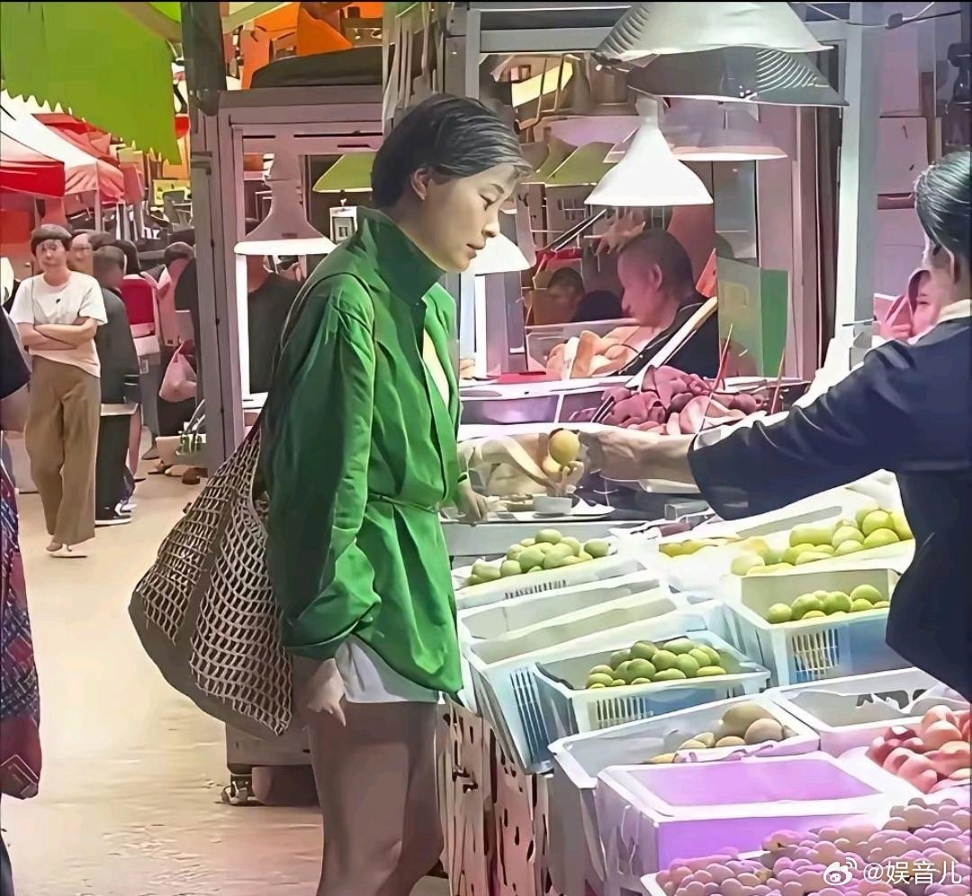 52岁吴越素颜逛菜场,满头白发却活成人间清醒吴越,素颜出门,穿着朴素逛菜场