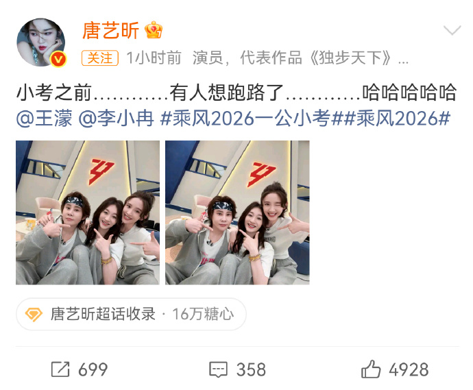 唐艺昕说小考前有人想跑路了 唐艺昕说:“小考之前…………有人想跑路了…………哈哈哈哈哈”