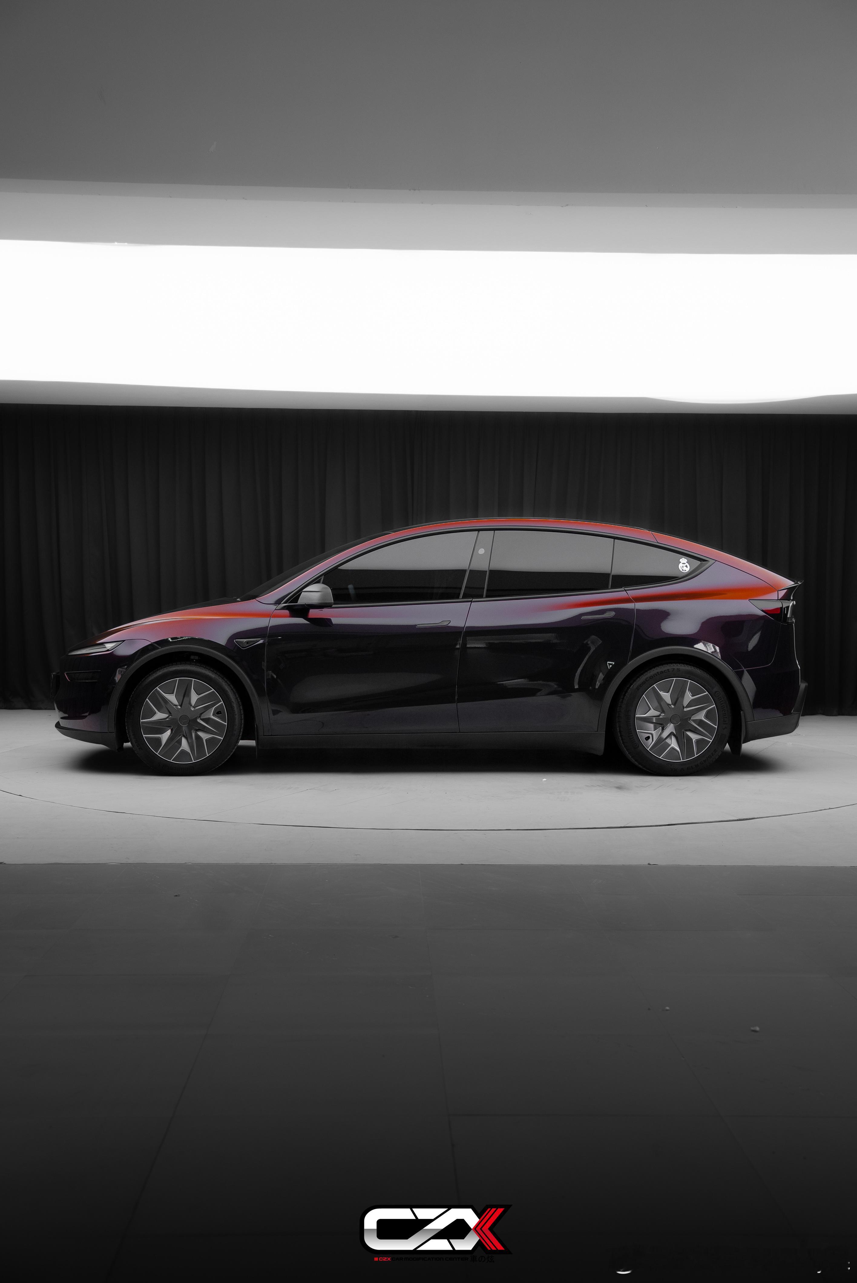 特斯拉Model Y改色贴膜AX PET流光黑魅红完工 远观是沉稳深邃的暗夜黑 低调内敛不张扬 近看在光影流转间 又透出细腻浓郁的红调 黑红交织 高级又神秘 不随波逐流 不刻意张扬 黑底藏红 光影随行 这才是属于Model Y的高级改色打开方式福州车之炫特斯拉ModelY改色贴膜 福州·车之炫(福州)汽车科技有限公司