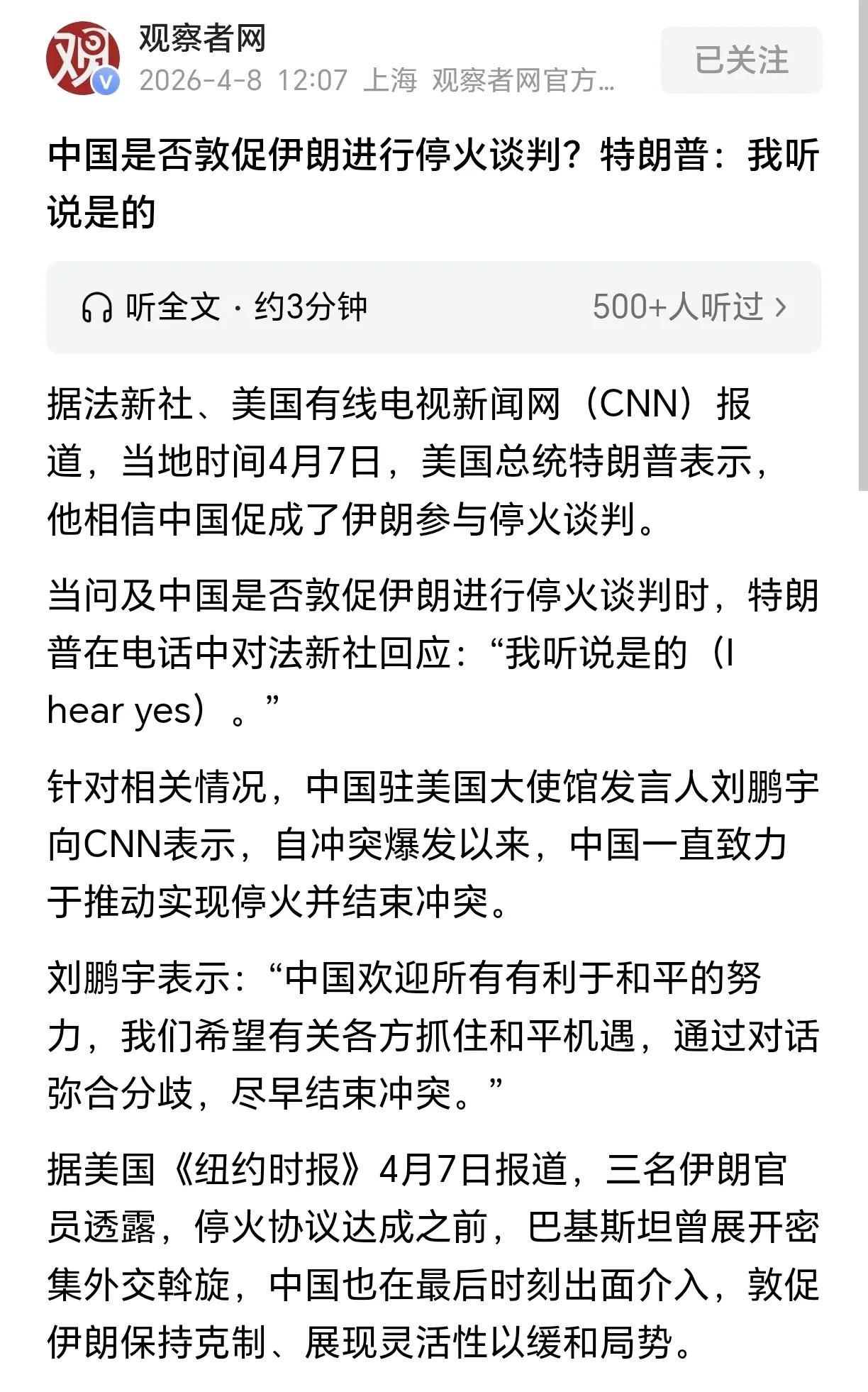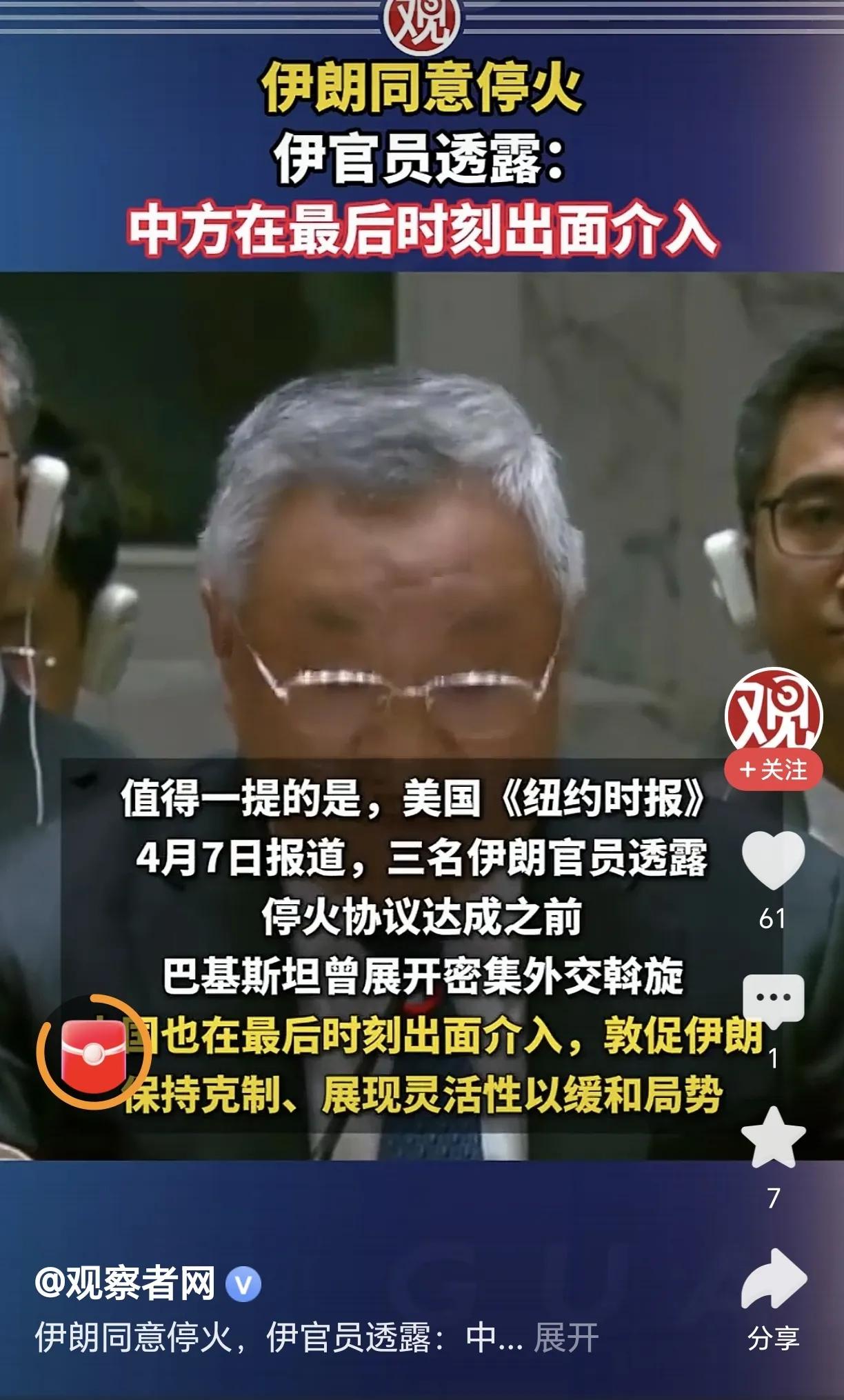 如果这次中国能够成功促成伊朗和美国永久性停火,那以后国际话语权及威望会提高很多。这次能让被影响的各国恢复正常生活、不再饱受高价能源之苦的话,那以后到底该听谁的他们心里就有数了。