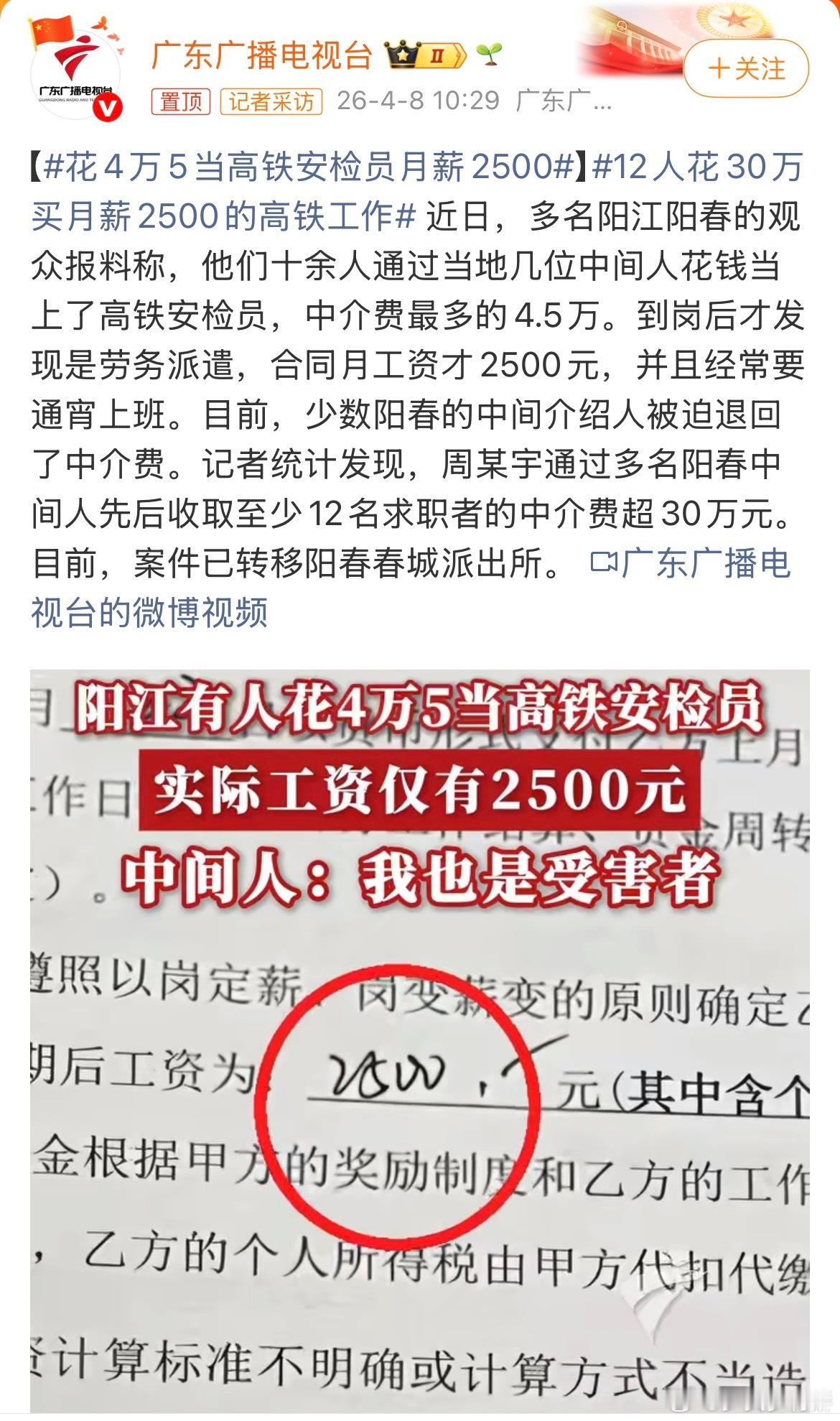 12人花30万买月薪2500的高铁工作2500的工资还需要介绍吗?不是遍地都是吗?