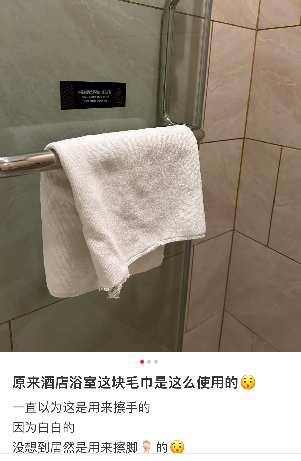 住酒店不带毛巾的人天塌了哎😮💨,酒店卫生问题老生常谈了,整改不到位只能咱们自己小心了,只能说烧水壶用之前可以先烧一次热水,顺便烫一下杯子,而厕所门附近的毛巾一般是用来垫在地上的,不要用来擦手..