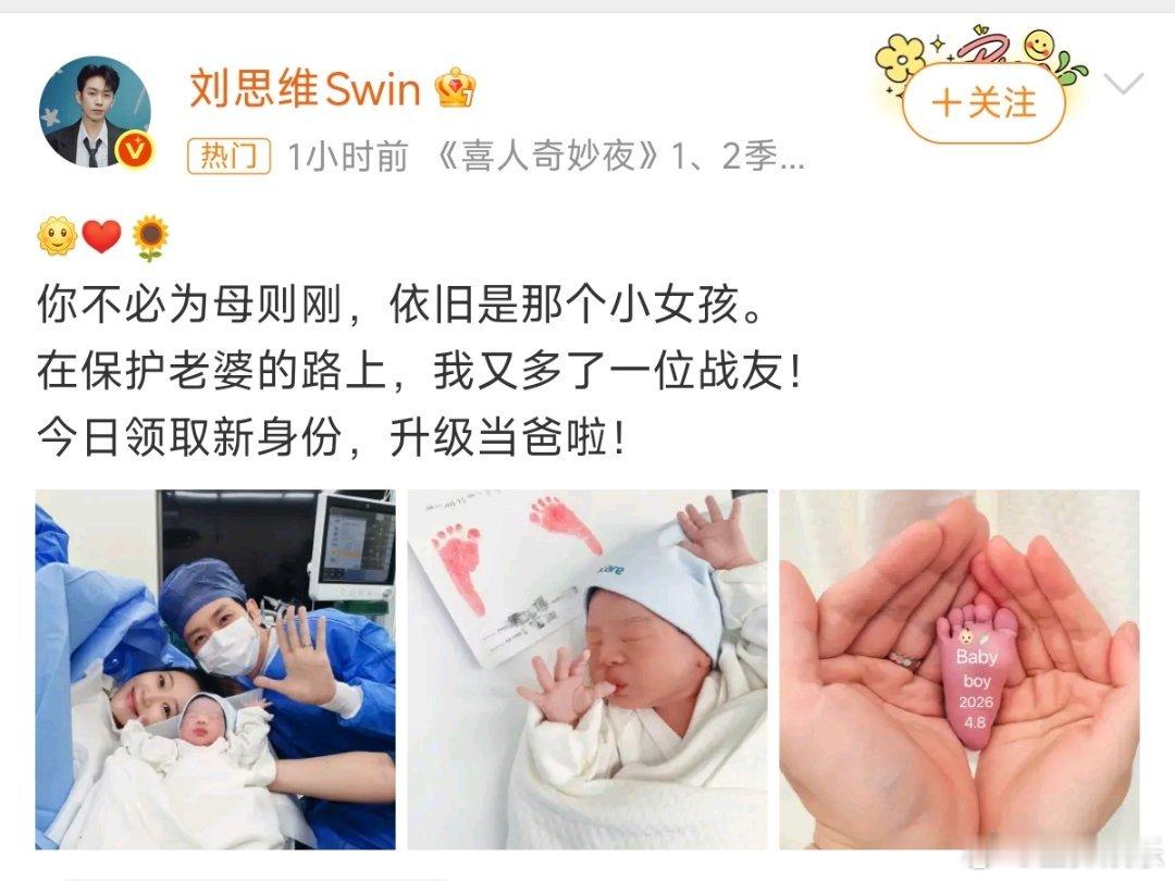 刘思维当爸爸了真的被这句“你不必为母则刚,依旧是那个小女孩”戳到了。不是把妻子框在“妈妈”的身份里,而是永远把她当成自己的小女孩来疼,护老婆的路上多了个战友,这种尊重和温柔真的太戳人了。喜剧演员在台上给大家带来快乐,台下把自己的小家庭经营得这么暖,真心祝福一家三口永远幸福呀