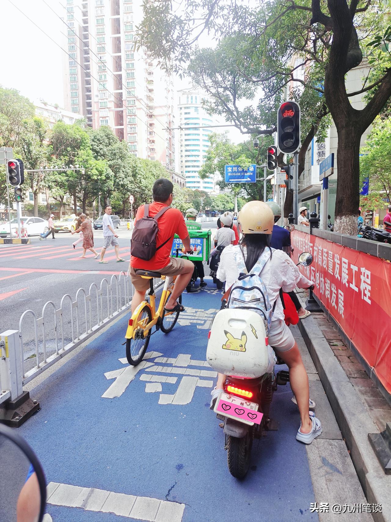 这种丁字路口,类丁字路口,直行一侧基本上没有电动车和单车看红灯。