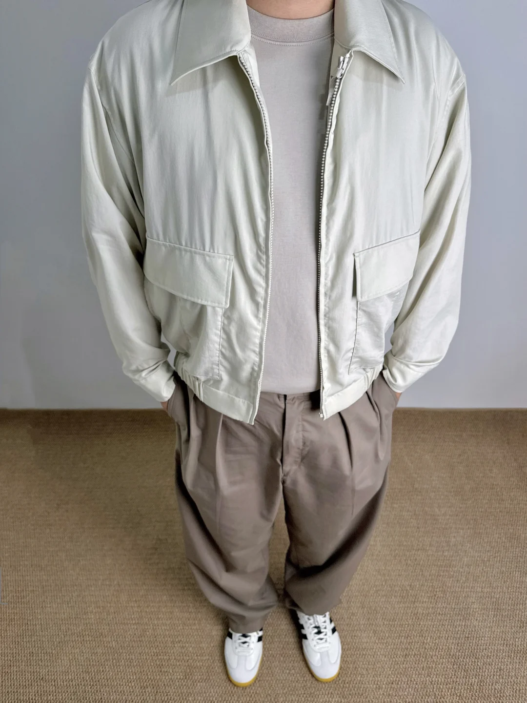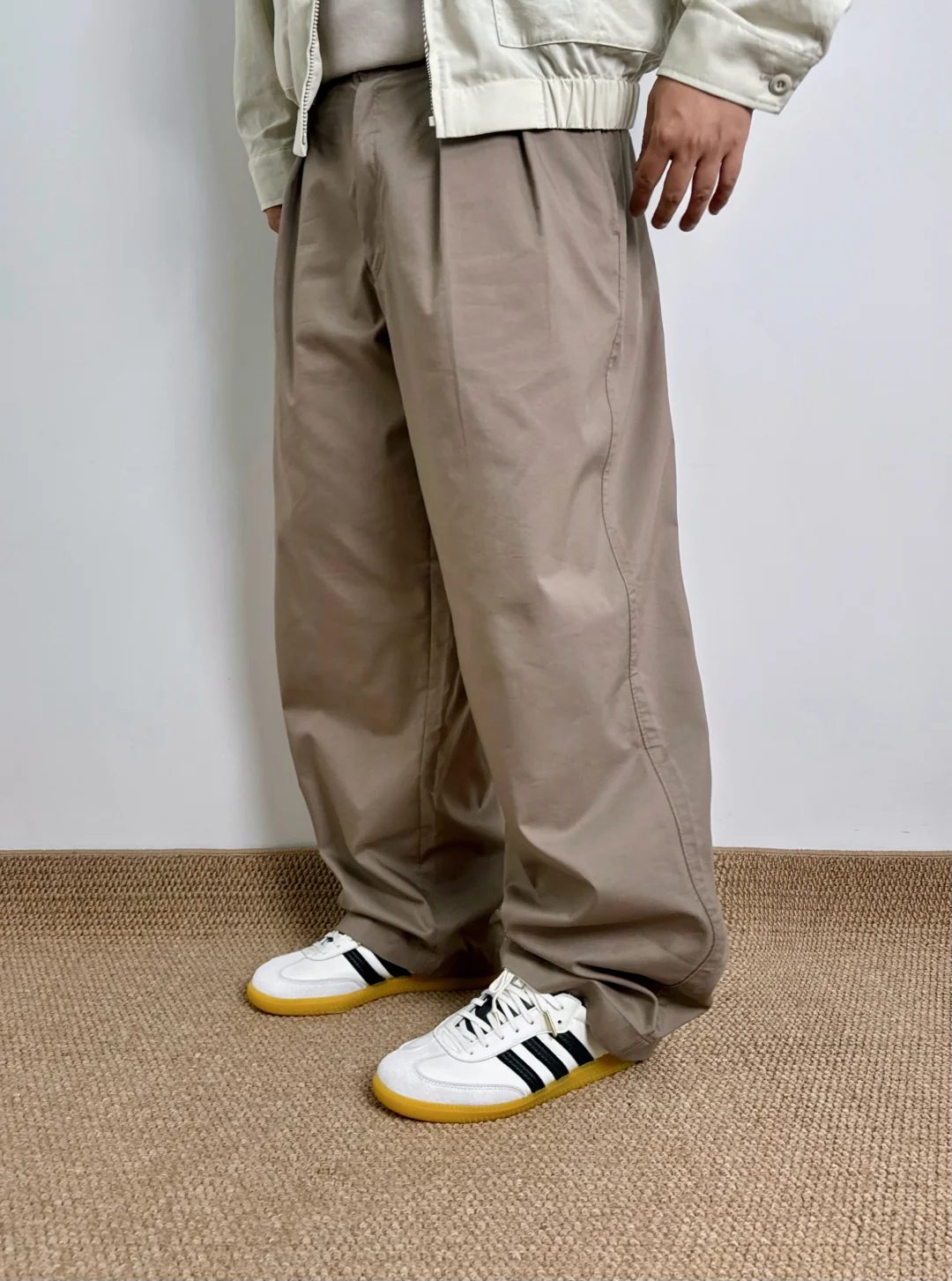 -紫色外套分享之后,又试了浅米色,光线下泛白,实物偏米黄;驼色打褶裤也存在色差,官图很浅,实物偏棕;有跟我一样感觉的小伙伴么