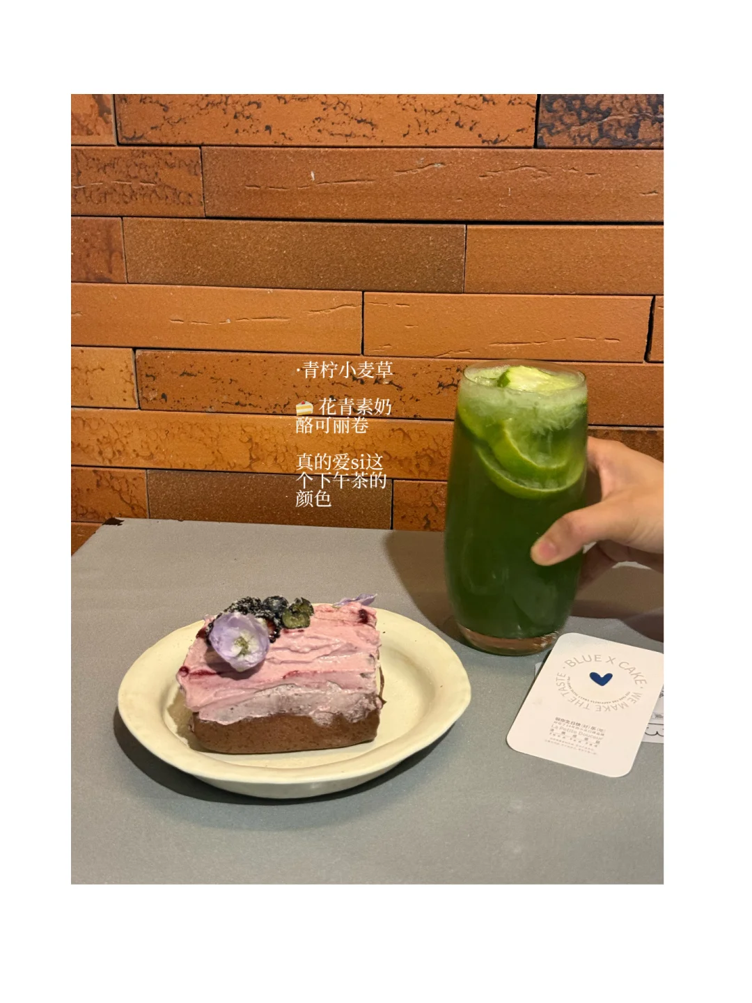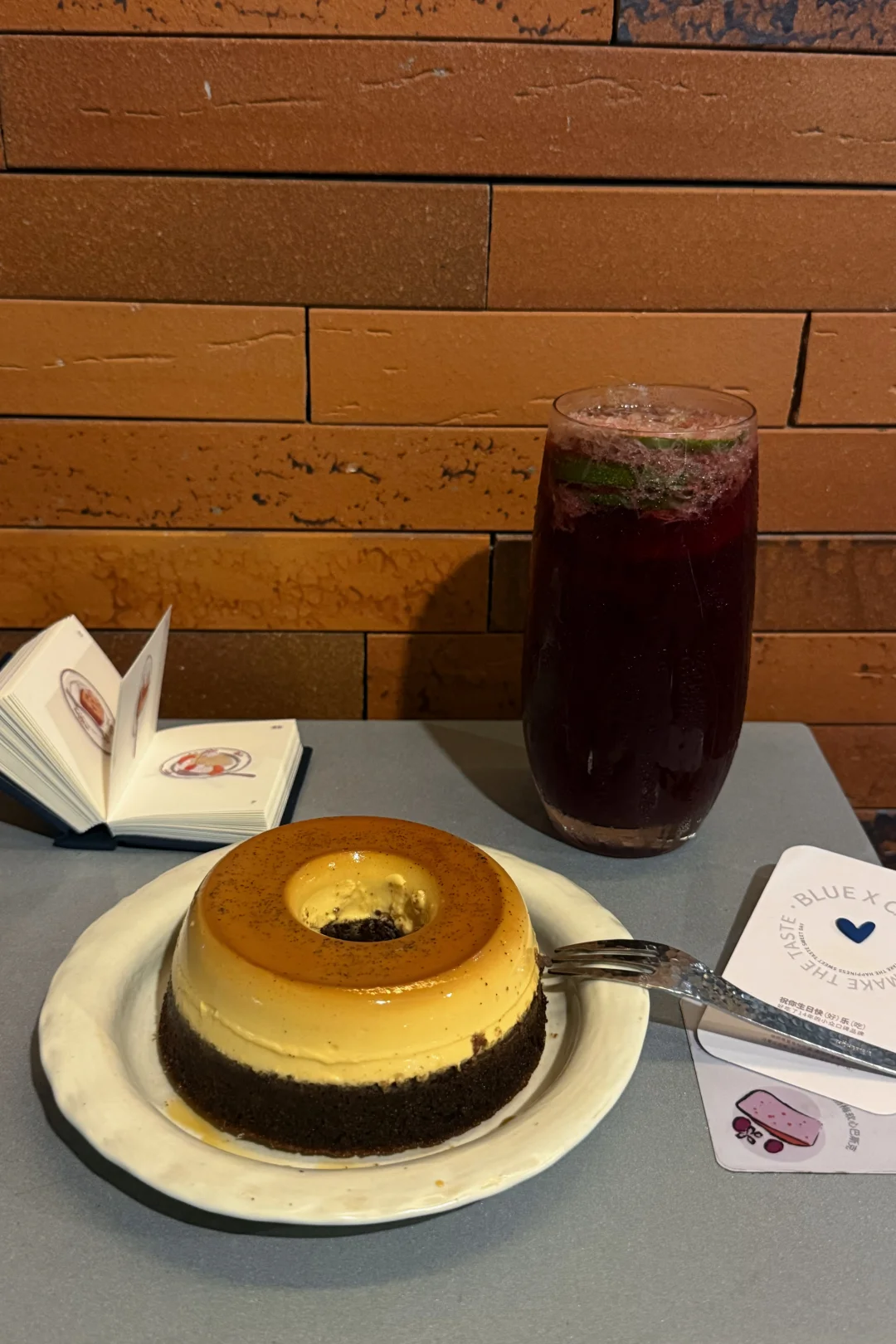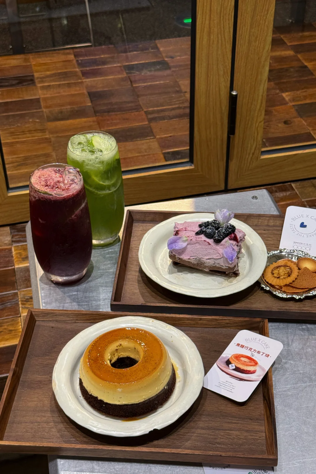 他们家就适合坐着发呆休息😴 第二次来他们家吃甜品了🍮 上次来也是休息日来补充能量 甜品基本不会踩雷:高于太多网红的颜l 布丁烧🍮很多人来点|一口微甜 建议两个人一起吃·完全没问题🆗 底下是巧克力布朗尼 造型duangduang 喝的话【红莓黑加仑红茶🥤甜度不会高 搭配的甜食来吃反而会突出少许酸感但相反是好的口感.可以试试 📍Blue X Cake洛佩塔蛋糕 深圳福田区梅丽路9号APark数字艺术公园,2楼103(云南特色烤肉隔壁