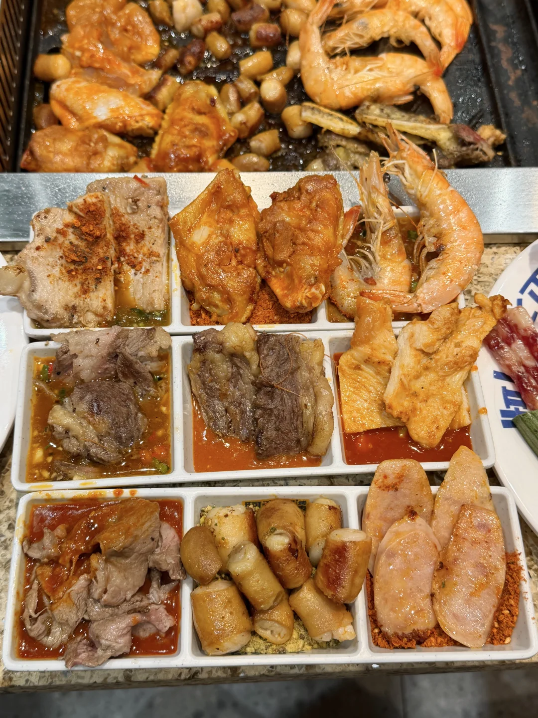 不夸张!!一般我都是11点马上冲进去!!! 东西满满当当的感觉真的巨爽 水果茶、甜品、炸鸡、火鸡面、拉面、水果、拌饭一应俱全不限量随便拿!!重要的是烤肉的种类也暴多,品质是目前我在长沙所有自助里面最满意的!! 吃回本完全没压力!!!