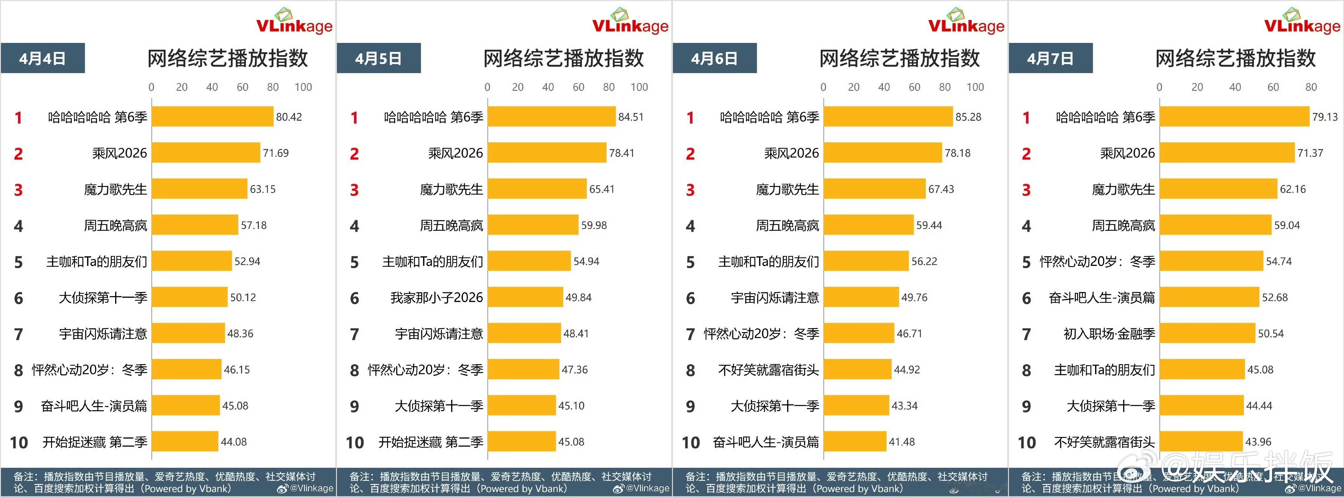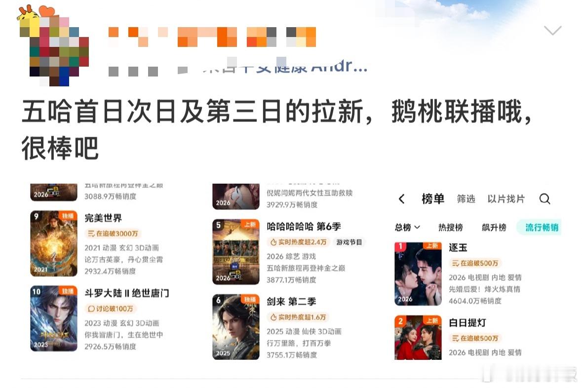五哈6云合断层第一五哈6口碑 五哈6好厉害啊,开播这么多天云合一直断层第一,浪姐播出也没影响五哈的热度,感觉这季数据比上季刚开播的时候要好一点,是不是因为鹿晗回归了哈哈哈哈哈,喜欢看邓超陈赫鹿晗铁三角的人还是很多的哈哈哈哈哈