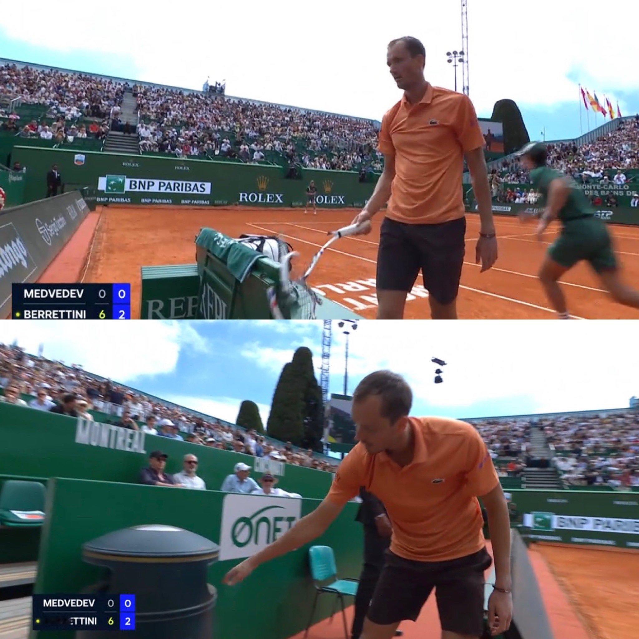 梅德韦杰夫砸碎网球拍 梅德韦杰夫吞双蛋蒙特卡洛大师赛