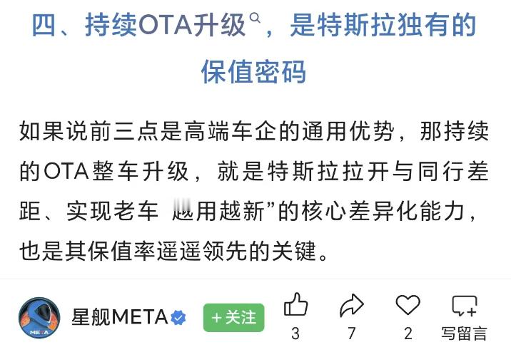 不仅如此,持续的OTA远程软件升级,让特斯拉真正实现 “常用常新”,用户不断免费获得新功能、新体验,也是其保值率长期领先行业的关键原因。