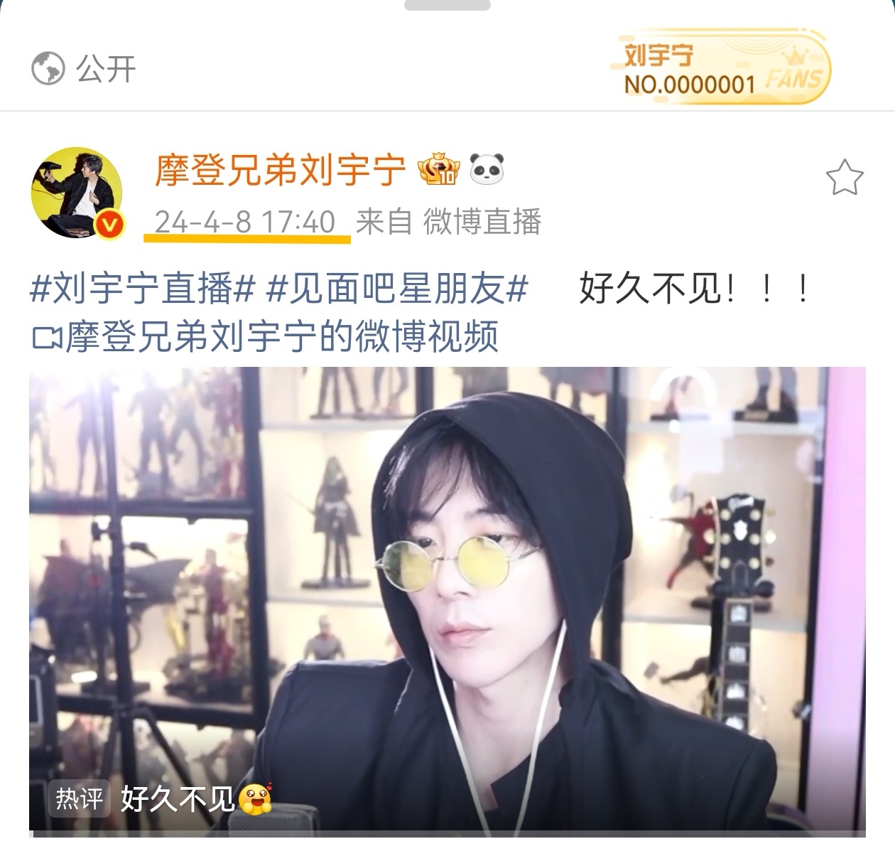 摩登兄弟刘宇宁直播 24年的今天,25年的今天,26年的今天,神奇的一天4月8日同一天,老大和我们相约见面直播喽!彼此都在想念啊!你真好