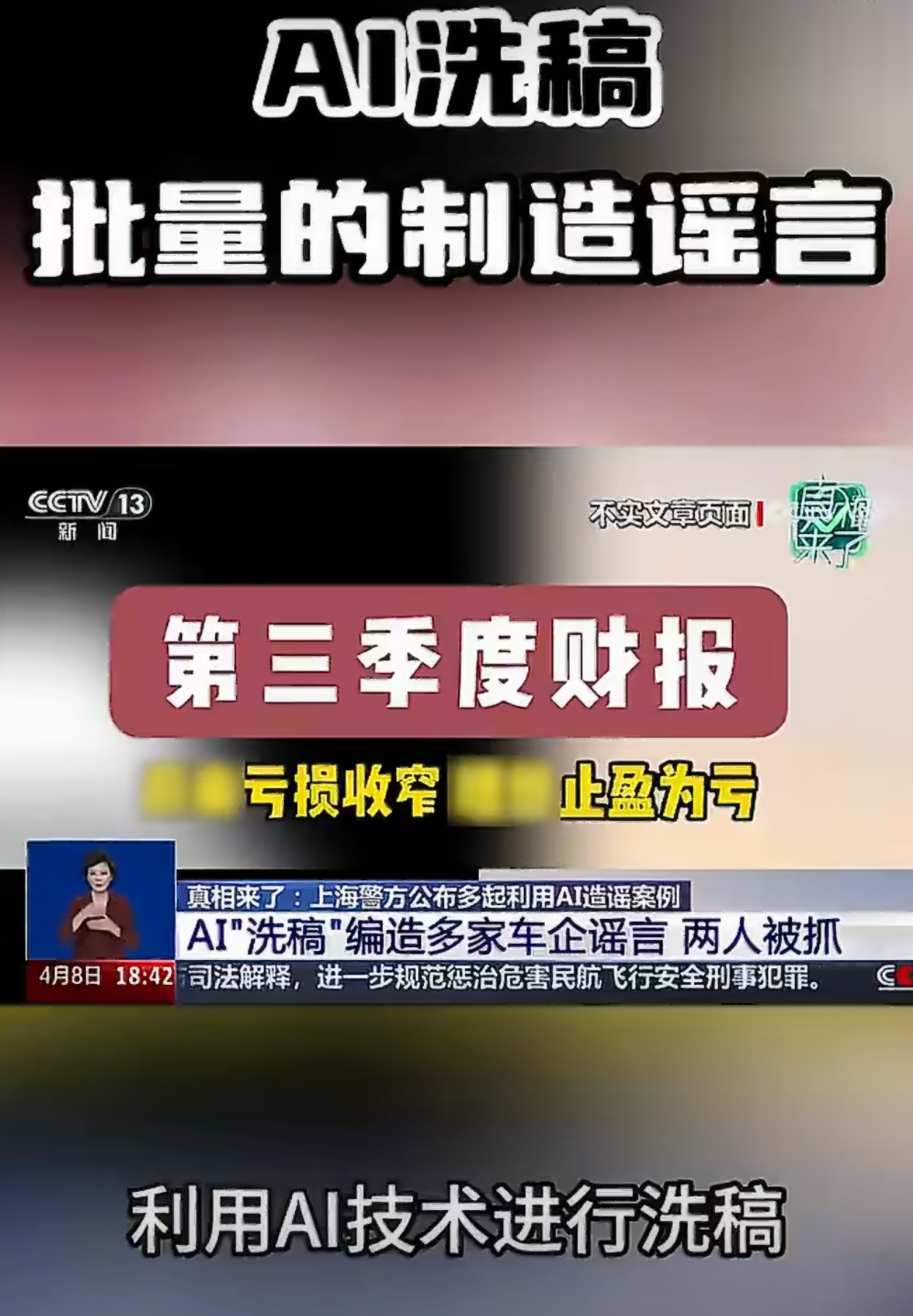 主要事件是,上海警方抓获两名嫌疑人,他们利用AI批量洗稿,发布黑稿超70万篇,获利8万余元,持续抹黑车企,现已被刑拘,必须严惩。