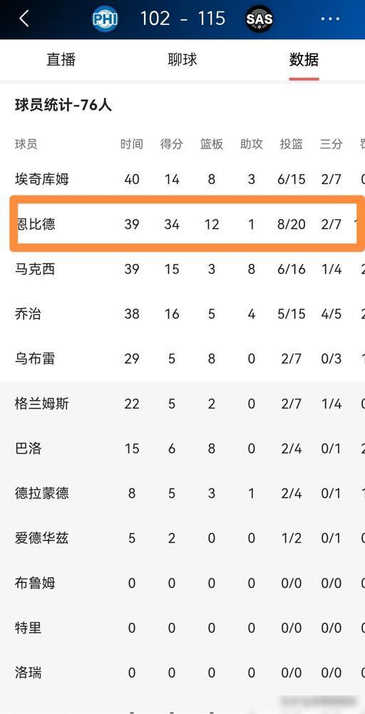 别再吹恩比德的34分12板了。我告诉你,那不是战功,是墓志铭。