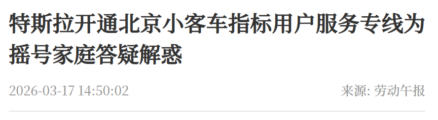 近日,特斯拉率先面向北京小客车指标用户开通服务专线,专为摇号家庭答疑解惑。
