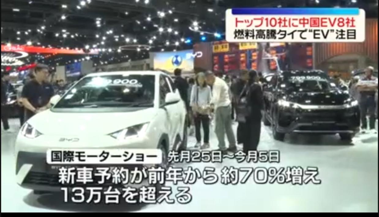 4月8日《日本电视新闻网》报道:在当前燃油价格飙升的背景下,泰国国际车展开幕,电动汽车的需求正急速增长。