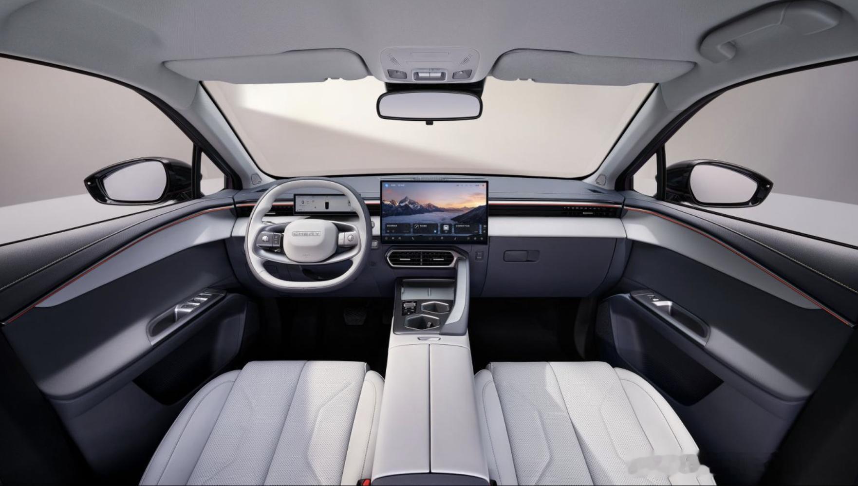 4、内饰采用简约科技风格,搭载8.88英寸全液晶屏+15.6英寸2K中控屏,内置8155芯片,采用AI语音大模型 ;同时,前排分体式运动座椅、索尼8扬声器等配置是它的看点配置