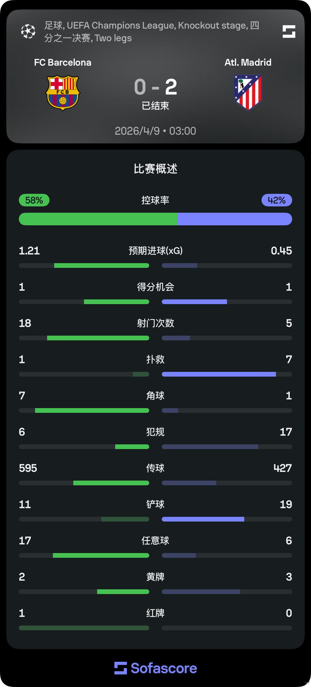 巴萨vs马竞同样一场 0 比 2,红牌成为一个转折点。