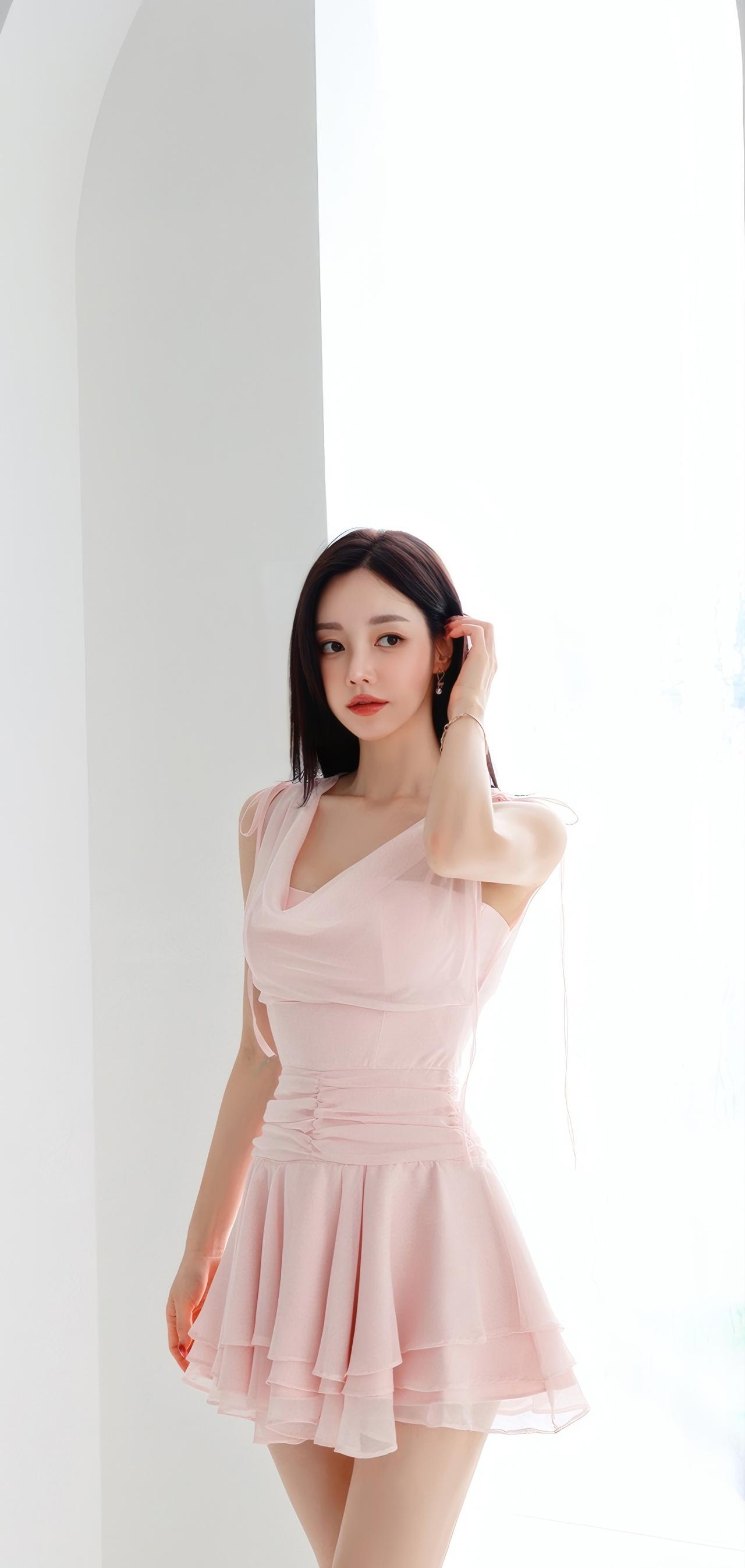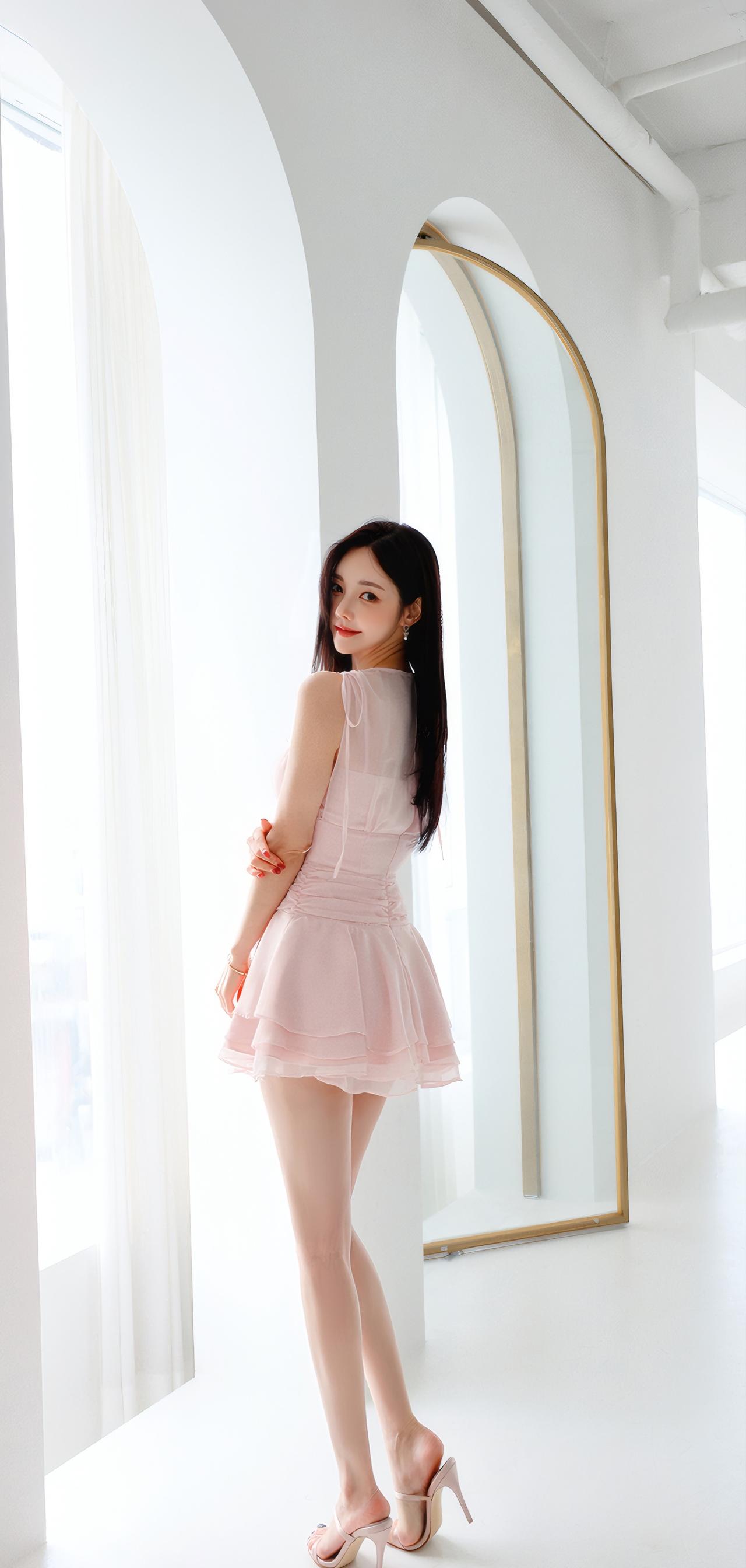 粉色甜美连衣裙,优雅气质满满,镜前自拍照,少女心爆棚!
