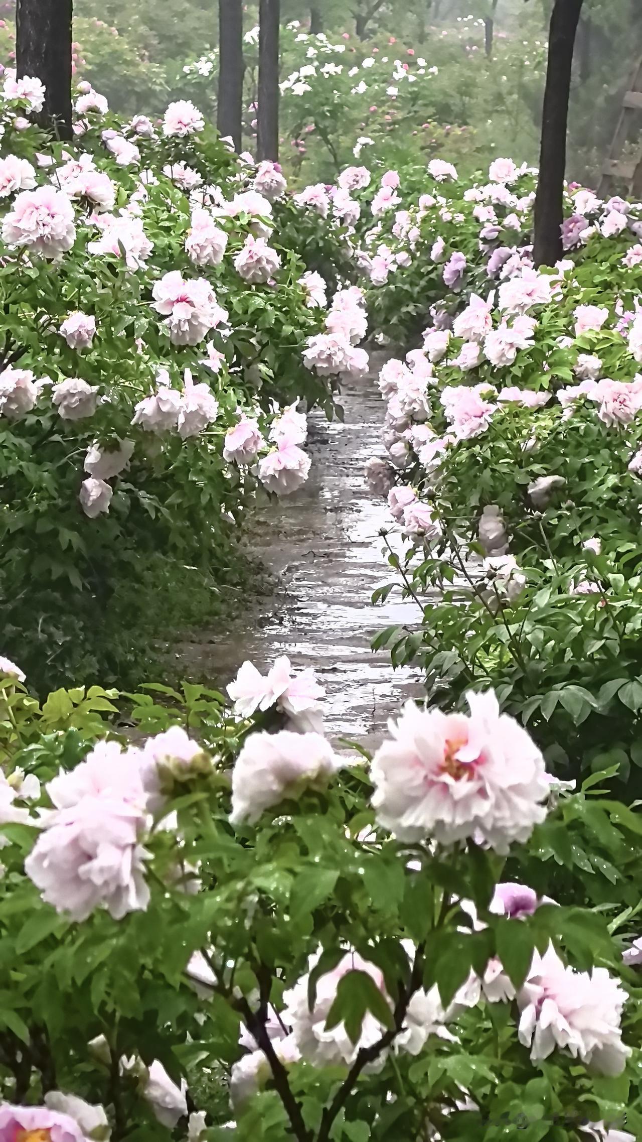 进入大门后,穿过竹林,翻越山间小道,第1站就可以到达牡丹谷,欣赏雨中牡丹的独领风骚。