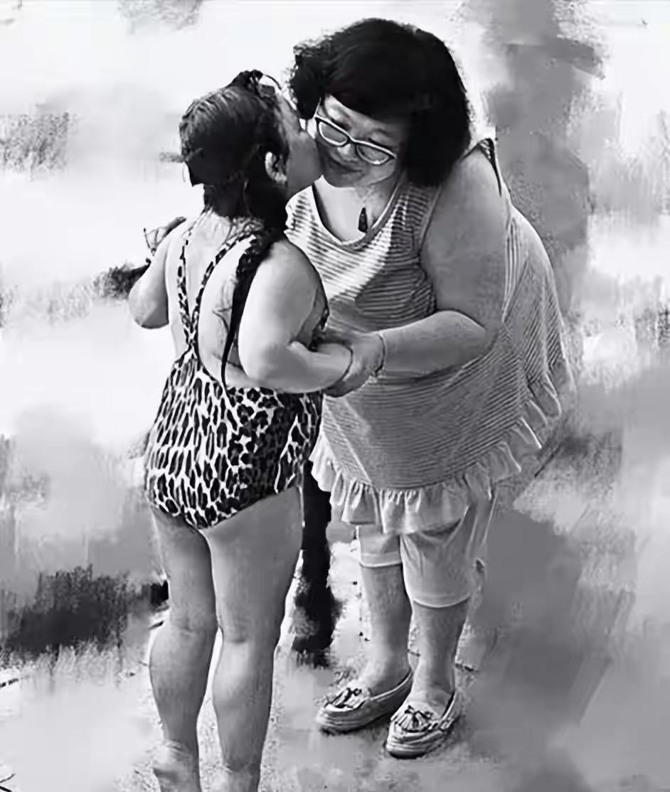 有天晚上,她突然觉得很难受,需要马上去医院,汽车渐行渐远,透过后视镜,她看到老母牵着年幼的女儿,站在家门口一动也不动,一大一小两个身影,像铁一样,烙进了她的脑海。