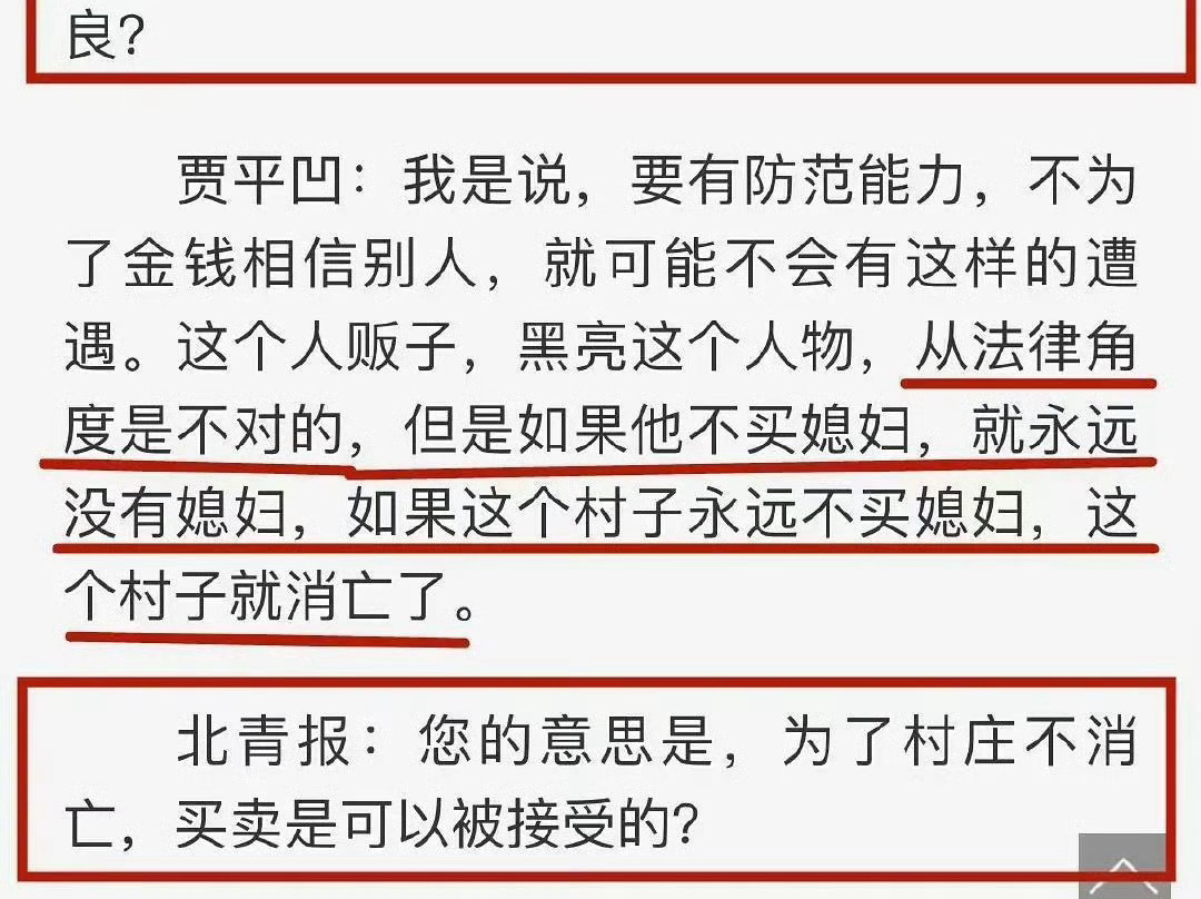 贾浅浅的爹贾平凹对人口贩卖的态度。太逆天了。贾平凹女儿被指论文抄袭对网传贾某某论