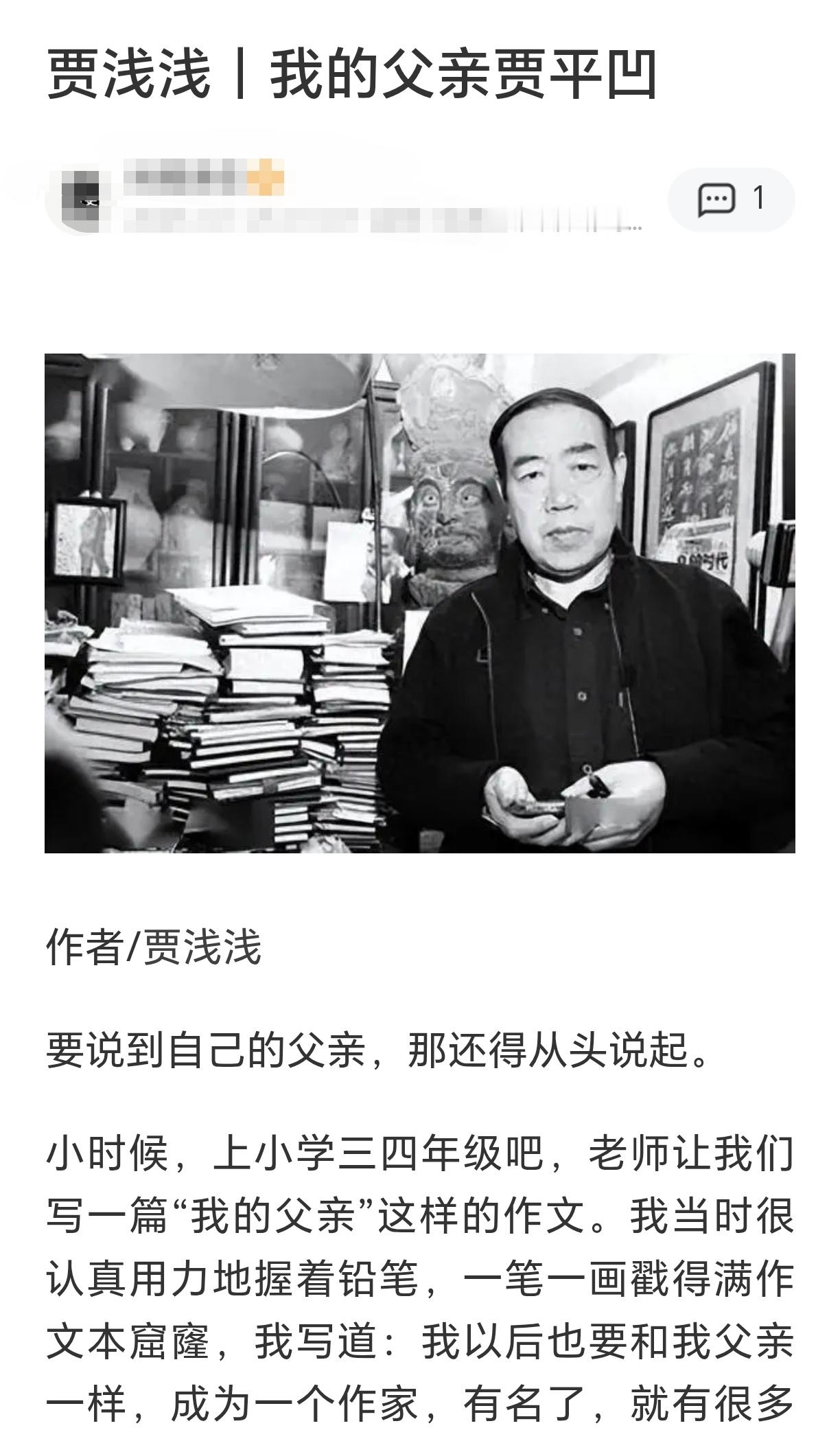 热知识:贾浅浅真的写过一篇文章《我的父亲贾平凹》对网传贾某某论文抄袭等启动调查贾平凹女儿被指论文抄袭