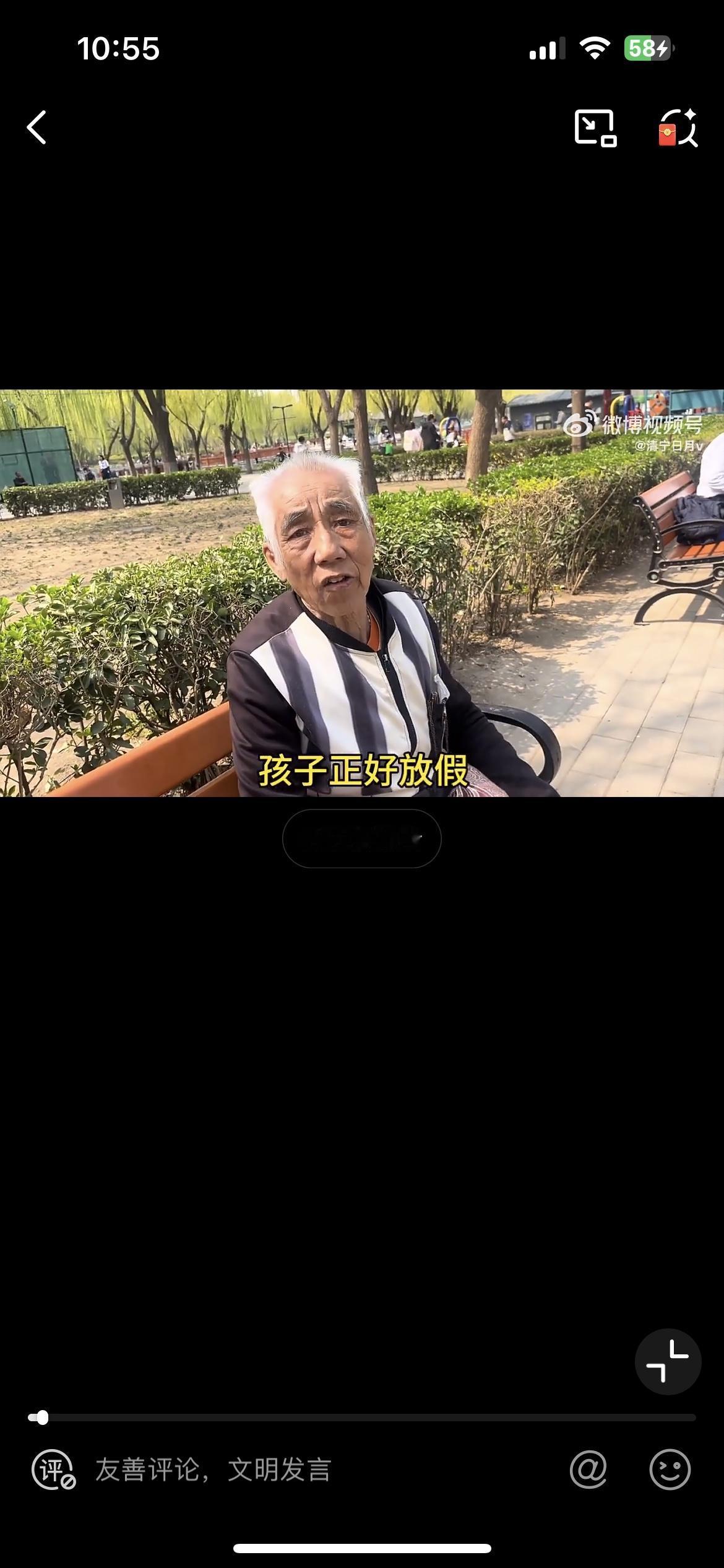 这个北京的大爷厉害,今年 78 岁了,孩子才 6 岁。他年轻的时候在哈尔滨飞机制造企业上班,医生退休,和之前的老婆离婚了。在北京找了个对象,他大了对象 20 多岁,两人结婚生了一个小孩,现在孩子刚刚 6 岁,才上小学。大爷周一到周五接送小孩,给孩子做饭。星期六孩子放假,妈妈带。他就出来公园里面遛弯、唱歌、打拳。大爷真的是老当益壮,令人佩服。
