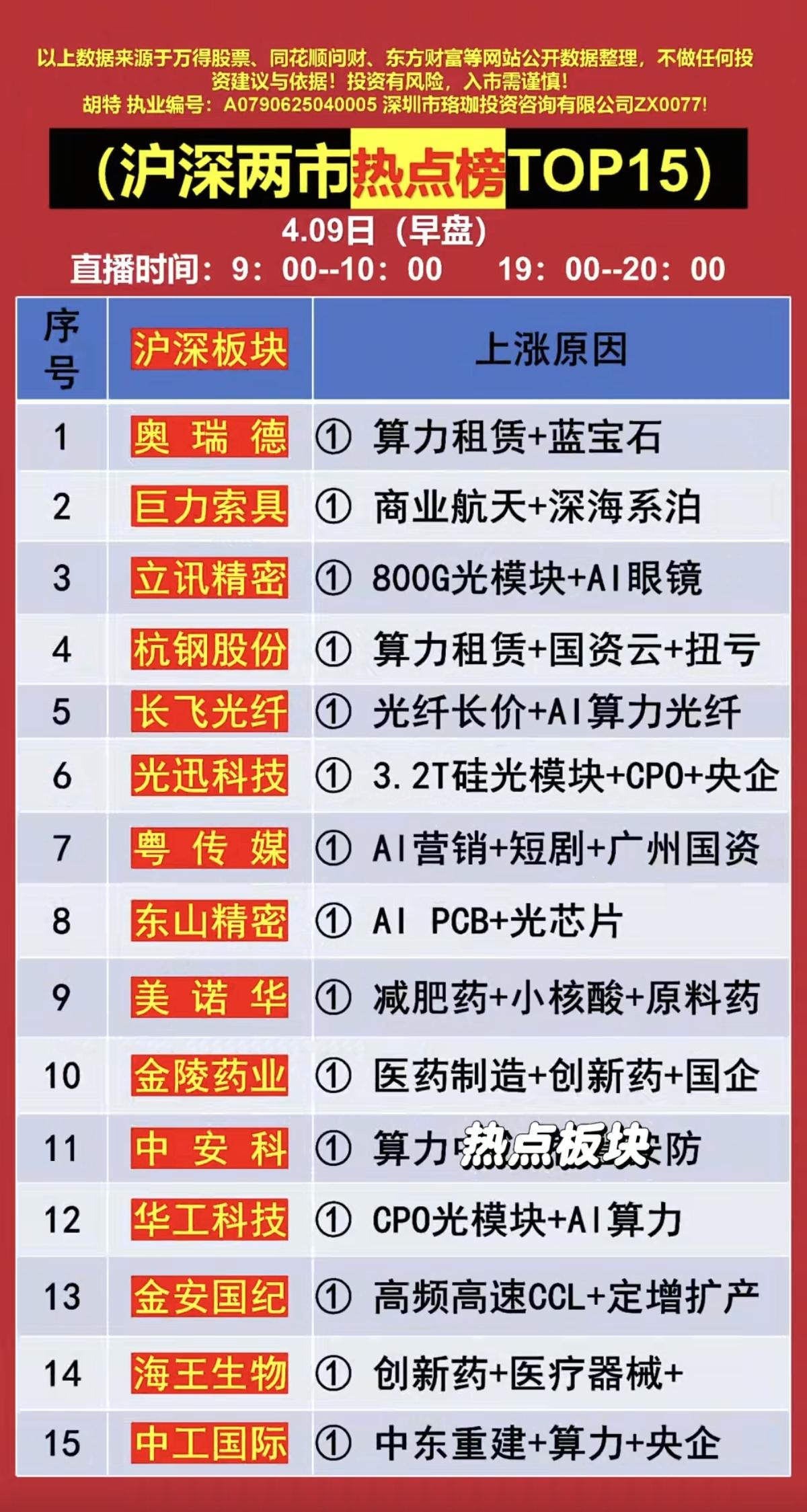 4.9周四 主力大资金抢筹+人气榜! 资金抢筹焦点: 1.商业航天+深海系
