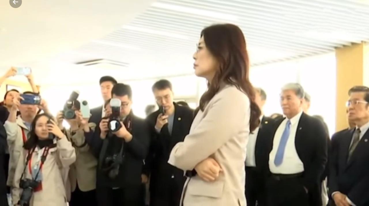 4月9日郑丽文参观洋山港,听接待员讲解的时候,时而双手抱胸时而双手背后,太有女强