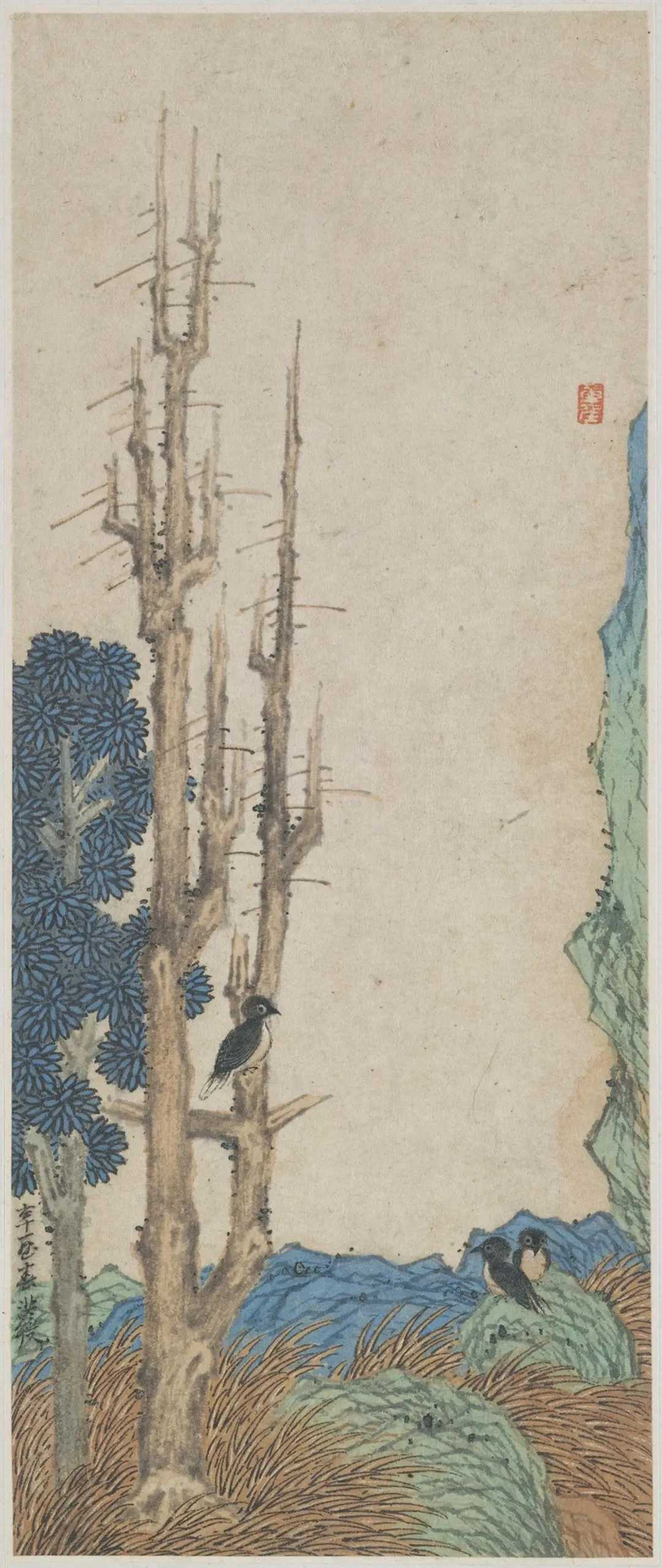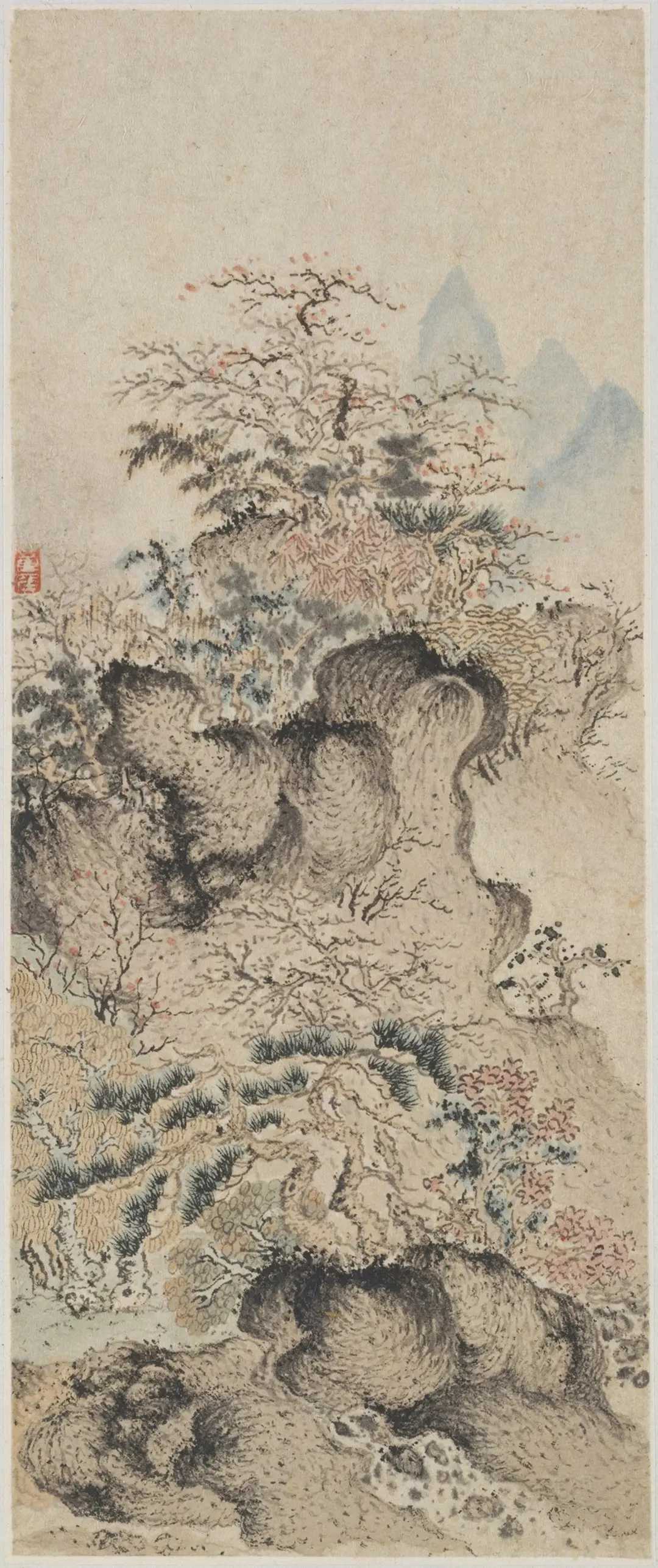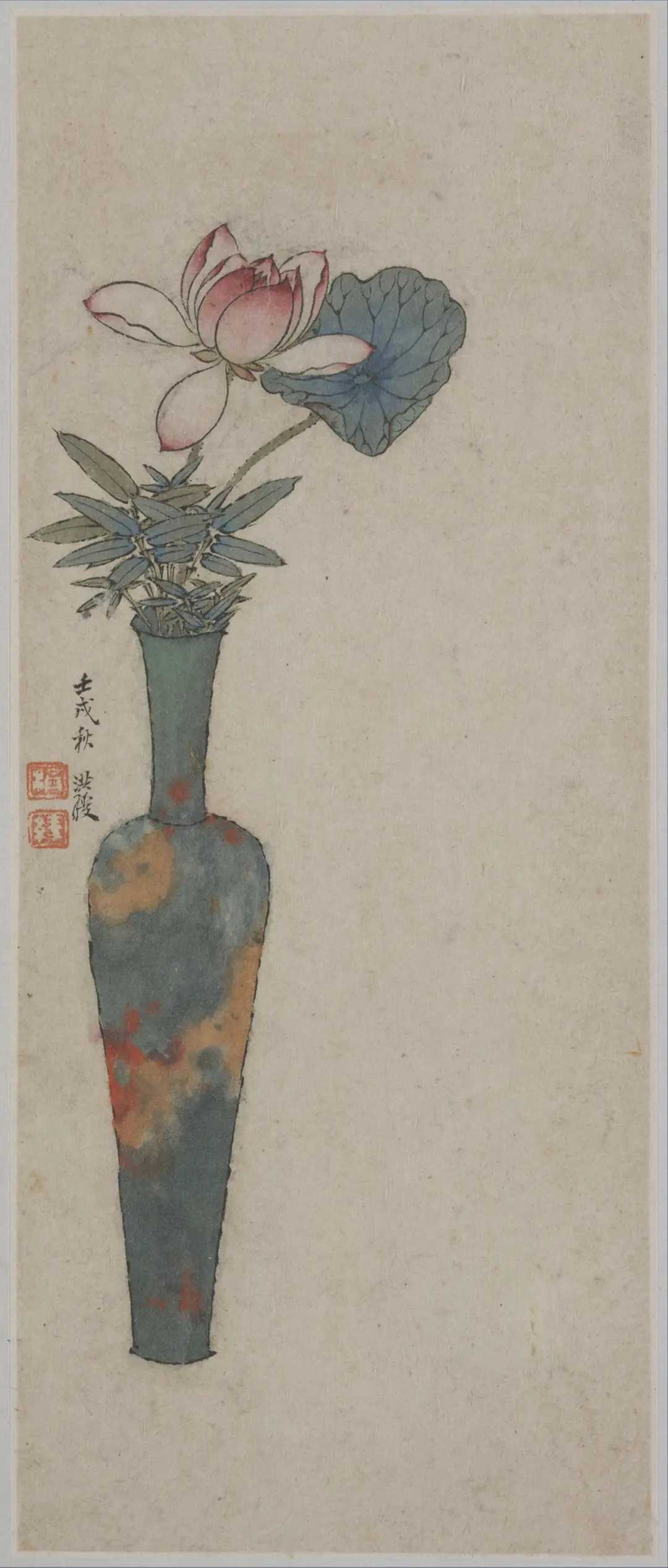 明 陈洪绶《山水人物花卉图册》。这套册页是陈洪绶年轻时的作品,创作于1618-1622年,当时他年仅20到24岁。每开都是一幅独立小品,题材丰富,包含山水、人物、花卉等。其画风独特,山水以凝重苍润之笔绘山石树干,花鸟则用细劲流畅笔法描绘花卉虫草,人物画线条若行云流水又兼具刚柔之感。这就是中国风遇见艺术