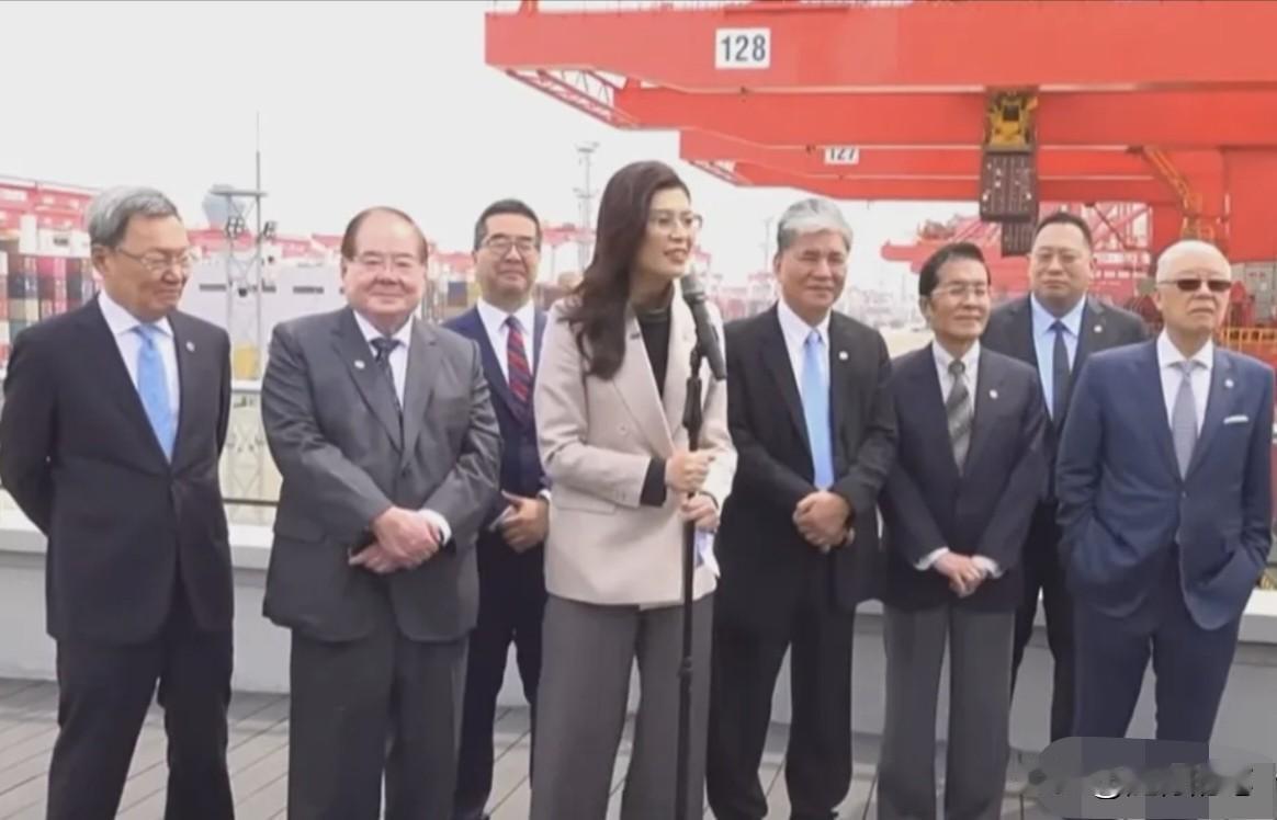 发现没有?郑丽文在大陆每参观一个地点都会发表一次演讲,今天参观上海洋山港之后也不例外,而且演讲时,手里依然还是拿着演讲稿,感觉这次访问大陆,郑丽文的演讲稿都已经事先准备几份了。而她背后也是站着跟随来的成员,李乾龙始终都是站在郑丽文的旁边,在郑丽文团队当中的地位份量可见一斑,其中还引人关注的就是苏起,虽然在岛内非常资深,但是这次随团来大陆很低调,每次站位拍照不是在后面就是站最旁边,这次也是一样,而萧旭岑也一样,虽然贵为国民党副主席,但每次站位都是在郑丽文背后,不想刻意抢镜头,很懂得分寸。