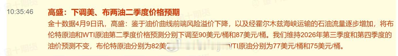 高盛:下调美、布两油二季度价格预期鉴于油价曲线前端风险溢价下降,以及经霍尔木兹海