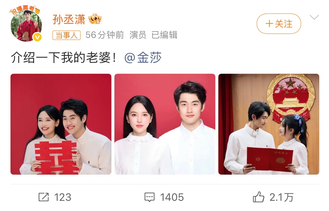 金莎孙丞潇领证哇 这对真的结婚啦👏恭喜🎉