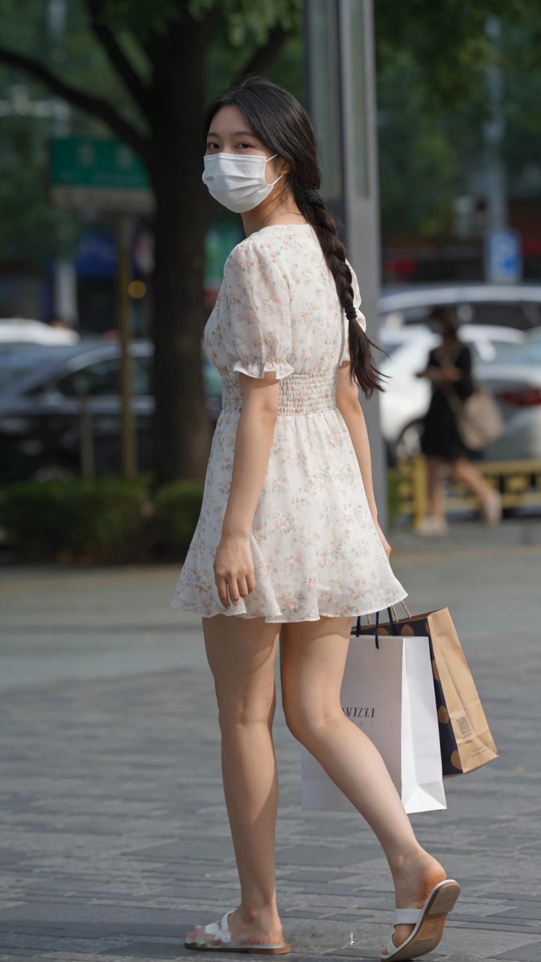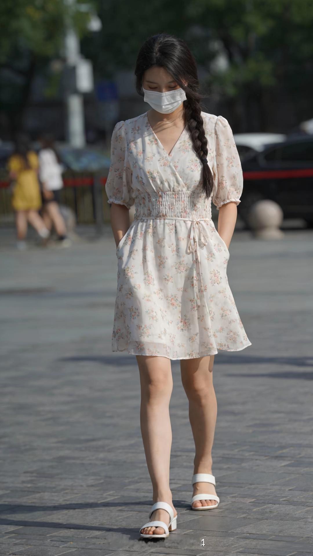 时尚穿搭秀 短裙穿搭 大长腿 夏季温柔碎花连衣裙 少女感夏日ootd