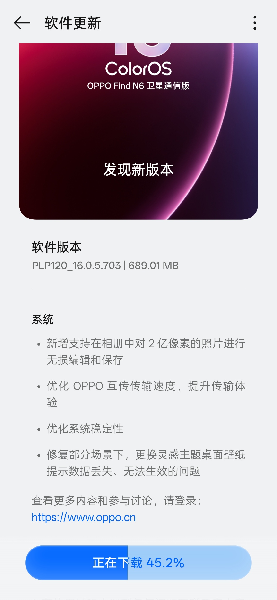 OPPO Find N6 ColorOS16继续更新 新增相册2亿像素照片可进行