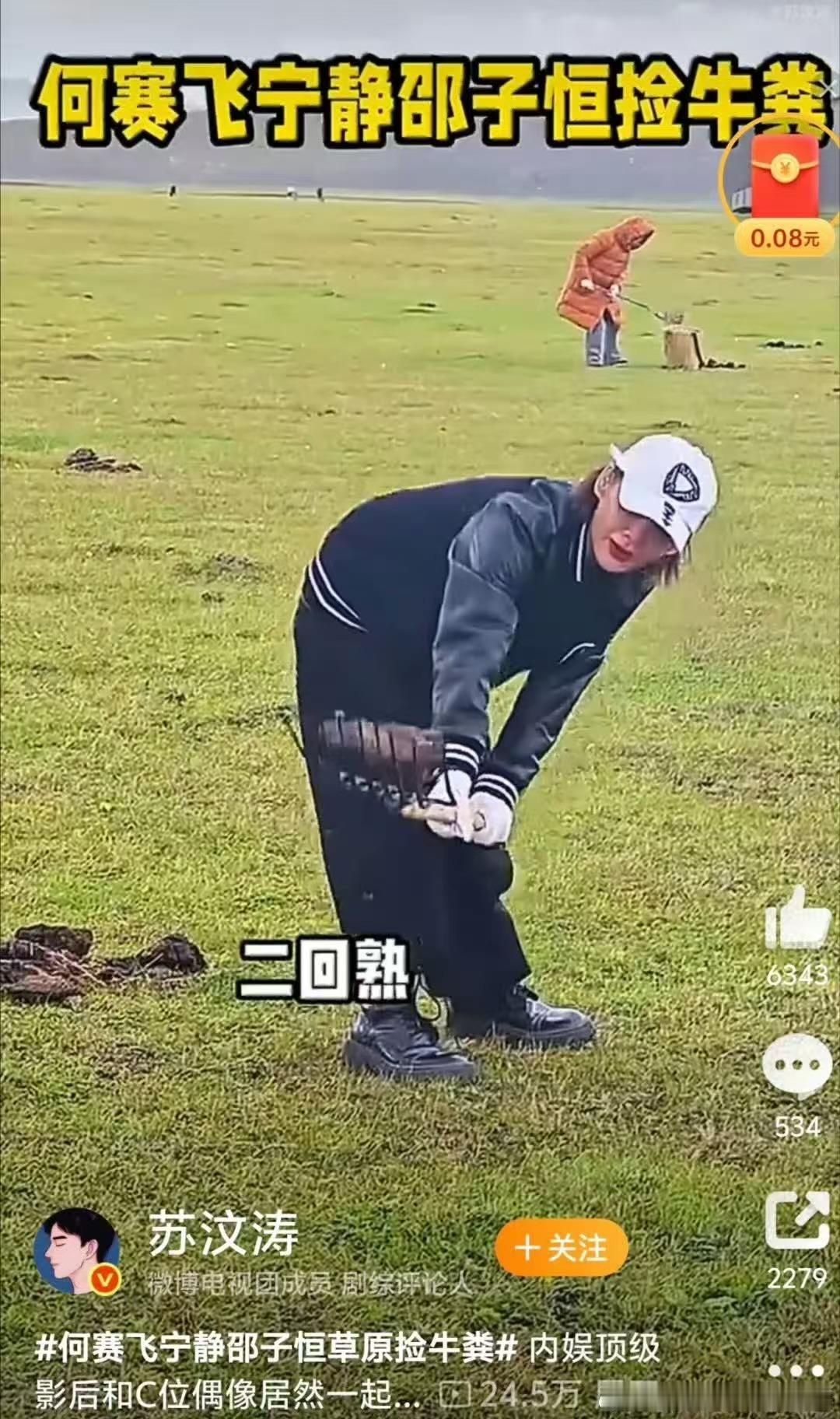 何赛飞宁静邵子恒草原捡牛粪 何赛飞捡牛粪都捡出了大家闺秀的架势,宁静捡牛粪像在拍