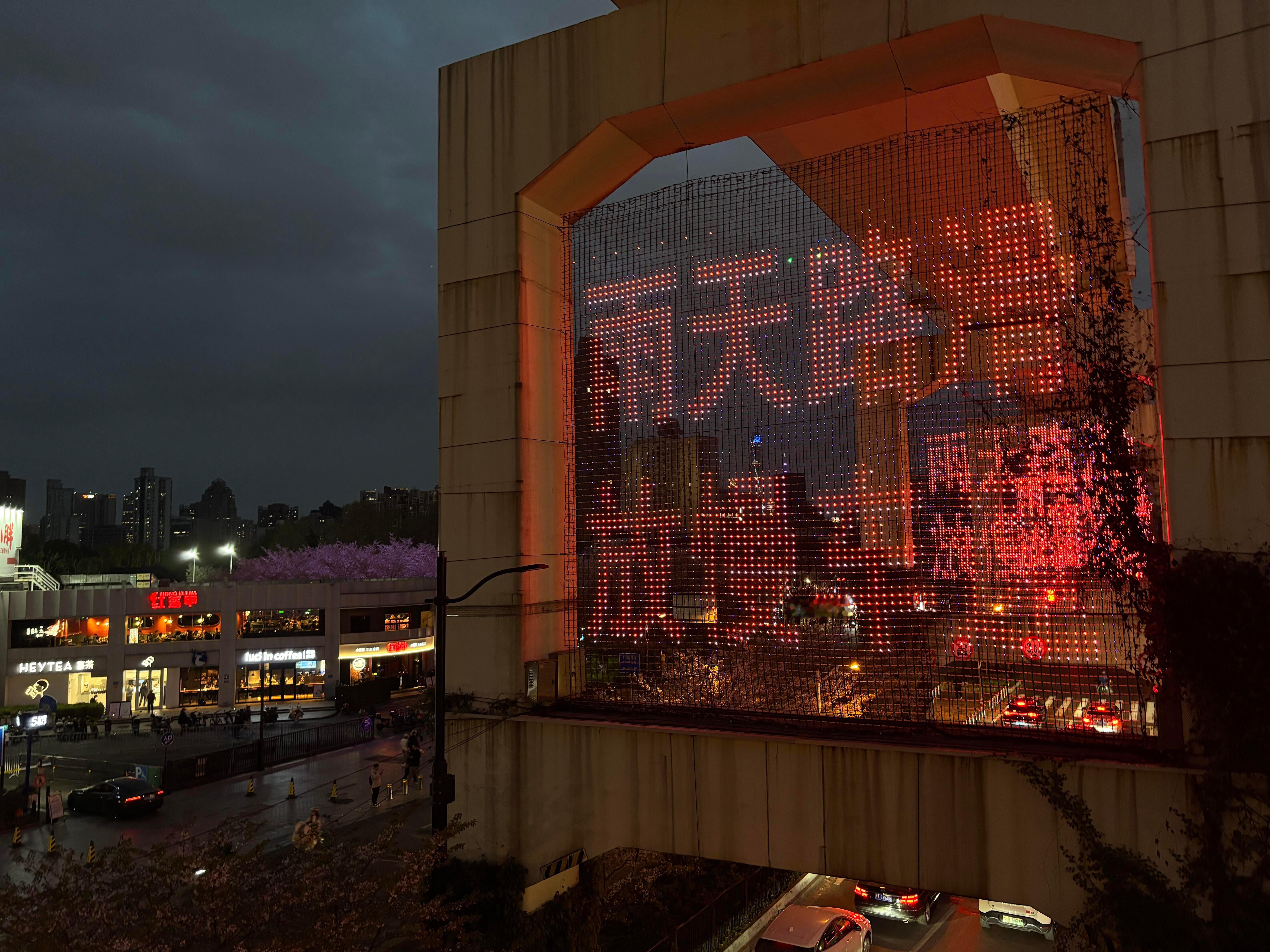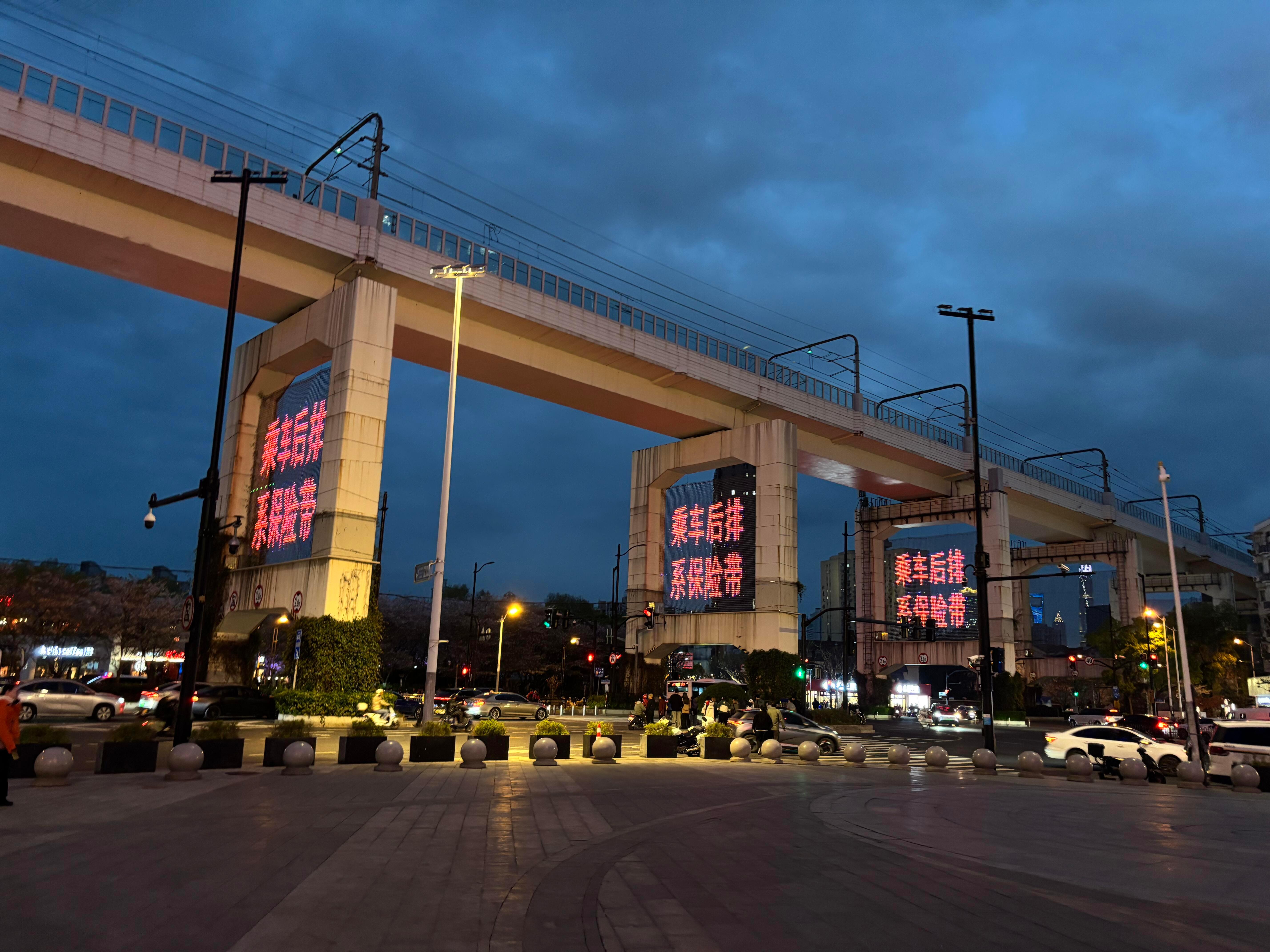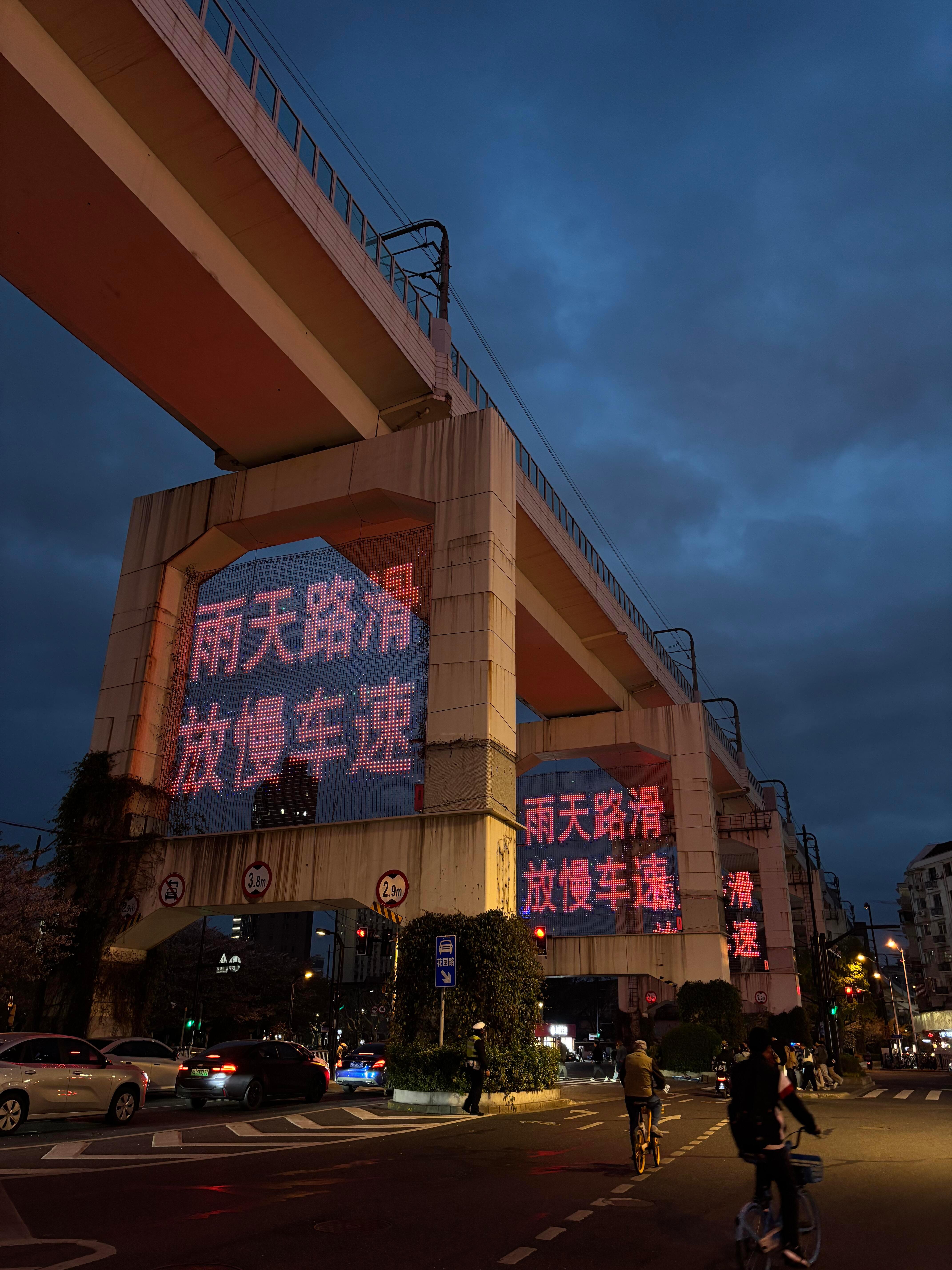 上海让我觉得非常中式赛博朋克的时刻大字红色标语+地上铁轨道+蓝调时刻+乌云密布再配上给樱花林的打光直接幻视银翼杀手和赛博朋克