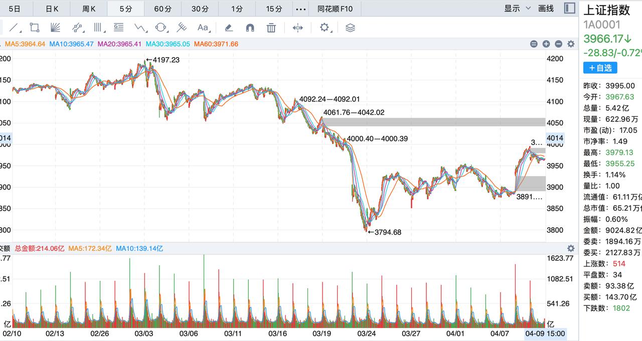 明天大盘仍然继续下跌!昨天大盘狂涨100个点,很多人冲进去了,今天则是跟昨天完全相反,4000多个股下跌,昨天冲进去的6成以上是被套了!后续该如何玩?