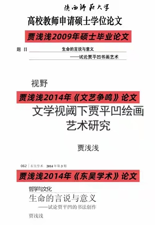 一:作品《文学视阈下贾平凹绘画艺术研究》,抄朱良志、曾令存、季酉辰、韩羽4位学者,整段复制、论点照搬、无一处引注。