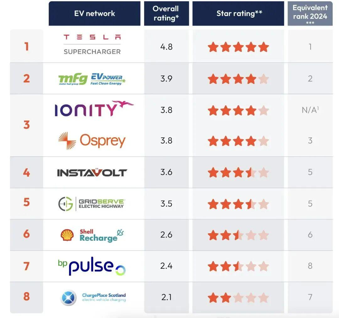 在英国权威调研机构Zapmap的2025年度评选中,特斯拉超级充电网络连续第二年被评为“最佳大型电动车充电网络”,在易用性、价格透明度及可靠性等方面的得分均属于行业领先。