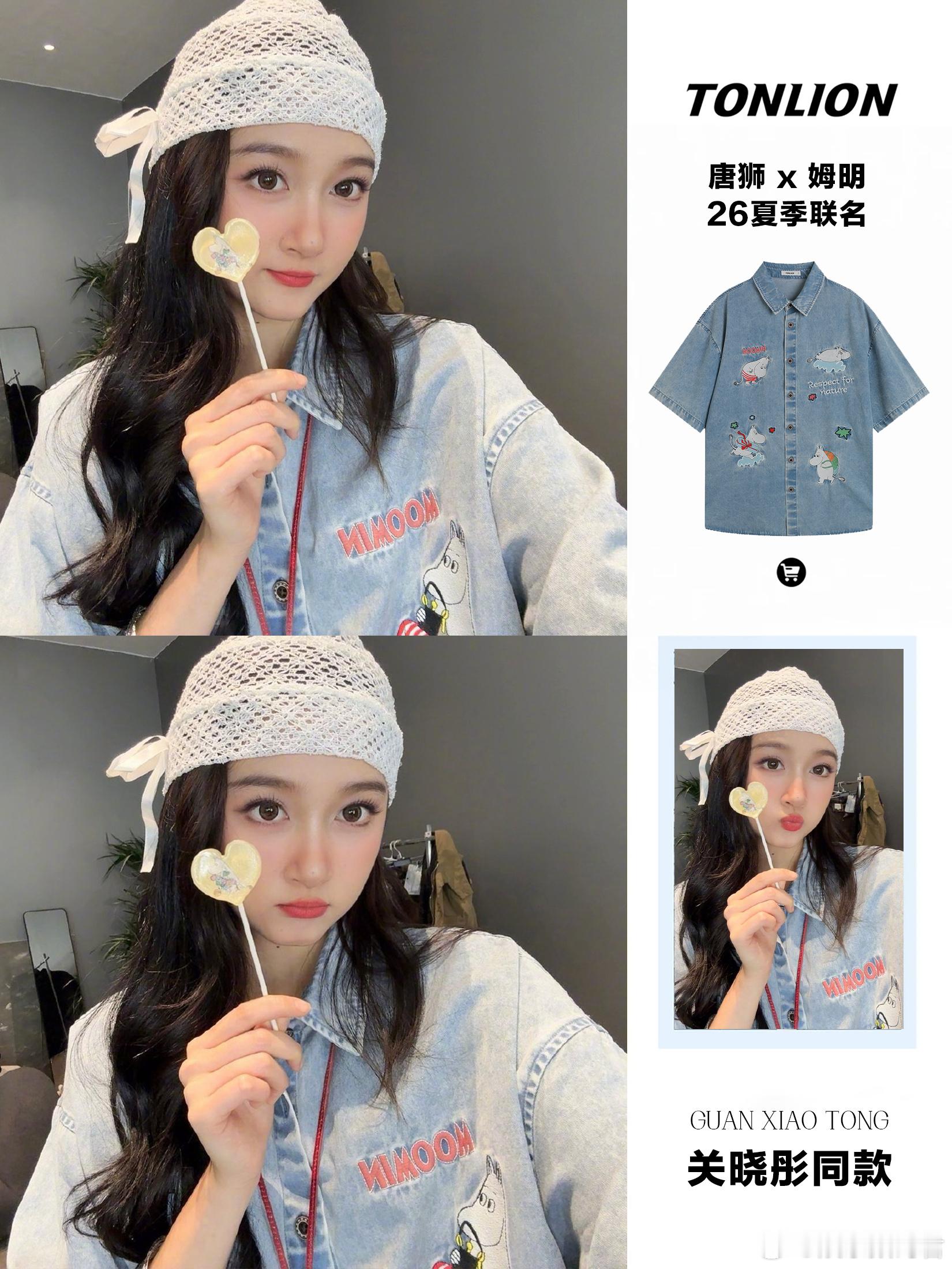 被关晓彤这身蓝色衬衫击中了!姆明联 名 款+清爽蓝色,夏日甜酷风拿捏得死 死的,我也要get同款!奇趣姆明俱乐部关晓彤唐狮品牌代言人