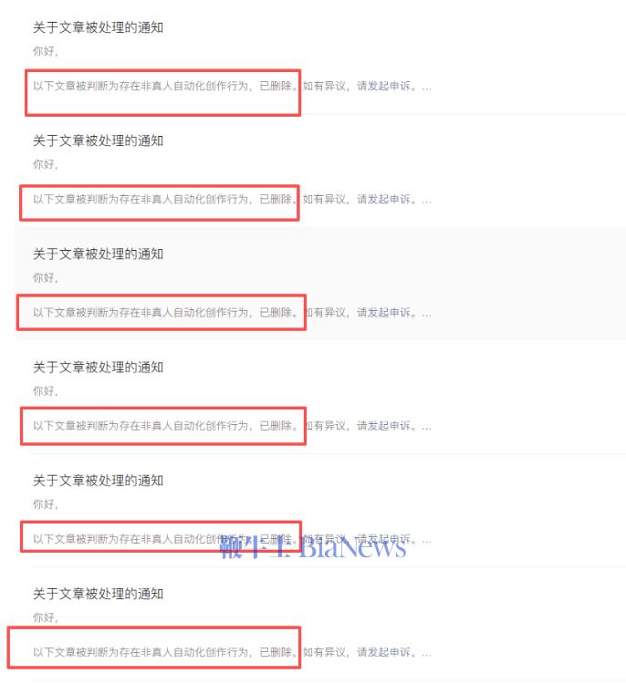 类似情况并非个例。另有运营者反映,自己纯手写的关于AI辅助撰写公众号内容的教程文章,也接连被平台删除。