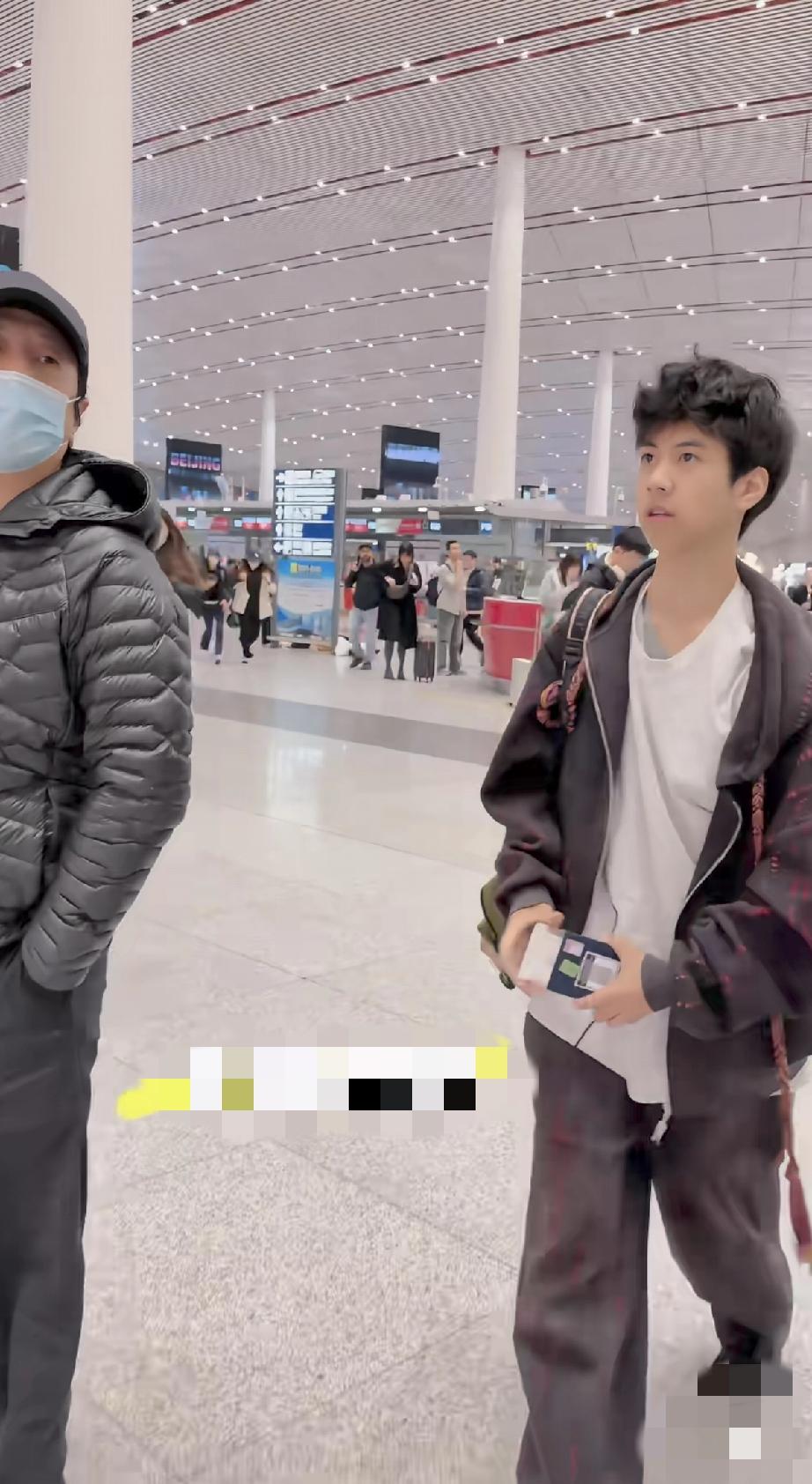 4月9日,郑钧送儿子jagger去外国留学,机场父子同框,16岁jagger个子