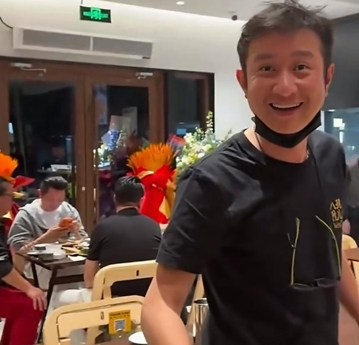 餐馆开业,文章和朋友穿着餐馆的统一工服,亲自忙着接待客人,他手里拿着酒杯,一桌一桌轮着打招呼敬酒,这服务绝对是到位的。