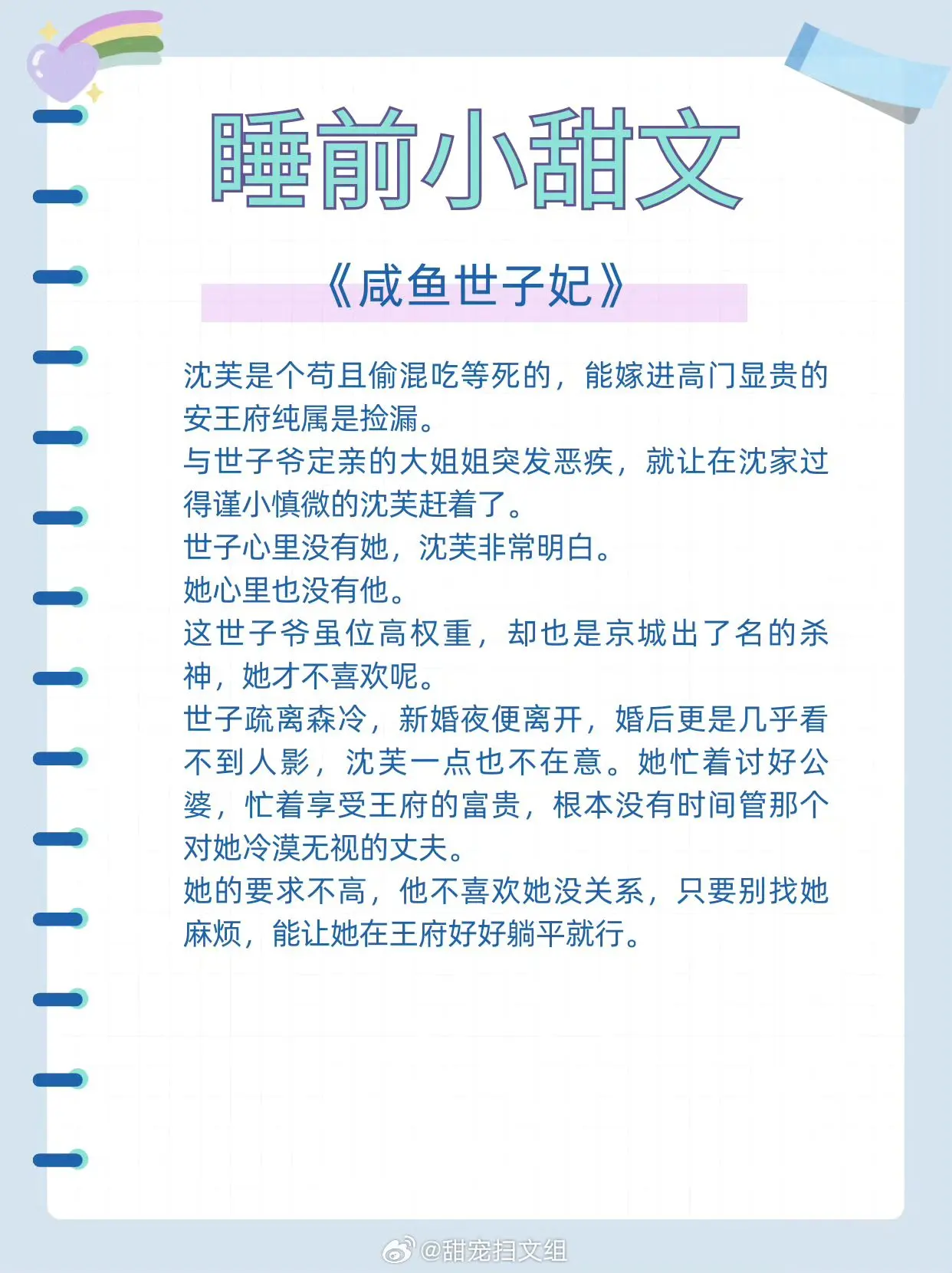 高质量睡前小甜文,甜到打滚! 1、《娇养太子妃》作者:小舟遥遥 2、《...