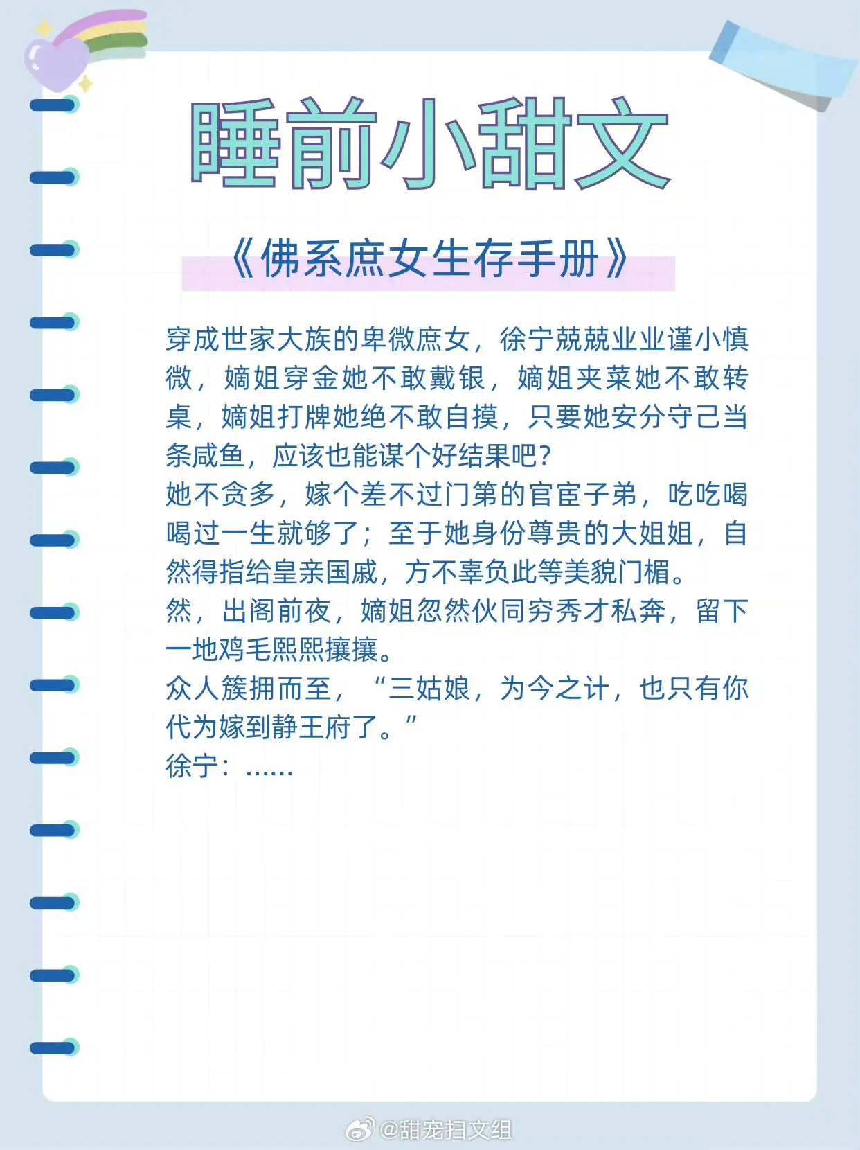 4、《佛系庶女生存手册》作者:天行有道