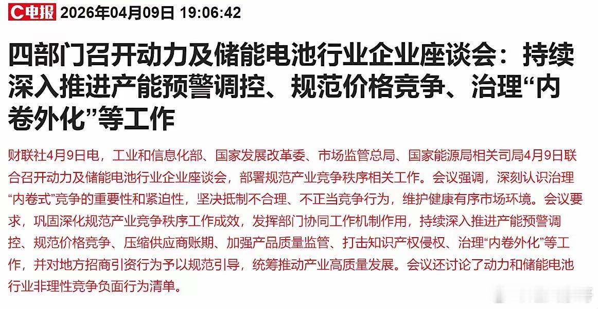 利好再次来袭!A股又稳了?1、反内卷利好:四部门召开动力及储能电池行业企业座谈会会议强调,坚决抵制不合理、不正当竞争行为,维护健康有序市场环境。会议要求,巩固深化规范产业竞争秩序工作成效,发挥部门协同工作机制作用,持续深入推进产能预警调控、规范价格竞争、压缩供应商账期、加强产品质量监管、打击知识产权侵权、治理“内卷外化”等工作。会议还讨论了动力和储能电池行业非理性竞争负面行为清单。反内卷的消息已经平静有一段时间了,大家都在期待具体的反内卷政策出台,如果用负面清单的形式治理内卷,也是很不错的个方法。预计后面会有更加具体的反内卷政策,这对新能源行业来说是直接的利好。目前光伏、电池、新能源汽车等都是严重内卷的行业,而且很多股价位置在低位,一旦有利好刺激,容易爆发出大涨的行情,值得关注。2、伊朗代表团将前往伊斯兰堡参加谈判白天都传谈判失败了,要再次打起来了,晚上终于落地了,谈判继续!伊朗外交部副部长赛义德·哈提卜扎德表示,伊朗代表团将前往巴基斯坦首都伊斯兰堡参加谈判。只要愿意谈,那市场资金就不再恐慌,行情就不会上蹿下跳了,主力资金也就敢做了!3、年报和一季报业绩公布期,业绩超预期的很多最近公布一季报业绩预告的很多,普遍业绩都非常好,尤其是算力、芯片、有色金属、创新药等,公布了业绩的公司股价多数上涨,甚至还有连续涨停的,而且持续也不错。围绕一季报给出的板块方向操作,赚钱机会大。总结一下,伊朗的影响还在,不过随着谈判的进行,影响力会逐渐减弱。白天传出关系又紧张的消息时,美元指数都没有涨,石油也表现平稳,而在晚上谈判的消息确定后,没有指数跳水跌出日内新低,也间接证明市场资金对中东局势并不悲观。这样的情况下,大盘指数或许不会有大行情,但是板块行情不会差!算力、芯片、有色金属、创新药等业绩好的板块值得重点关注,反复操作。