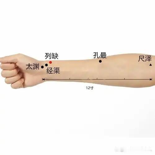 列缺‌(通任脉):主治咳嗽、气喘、咽喉肿痛及头项部疾患。